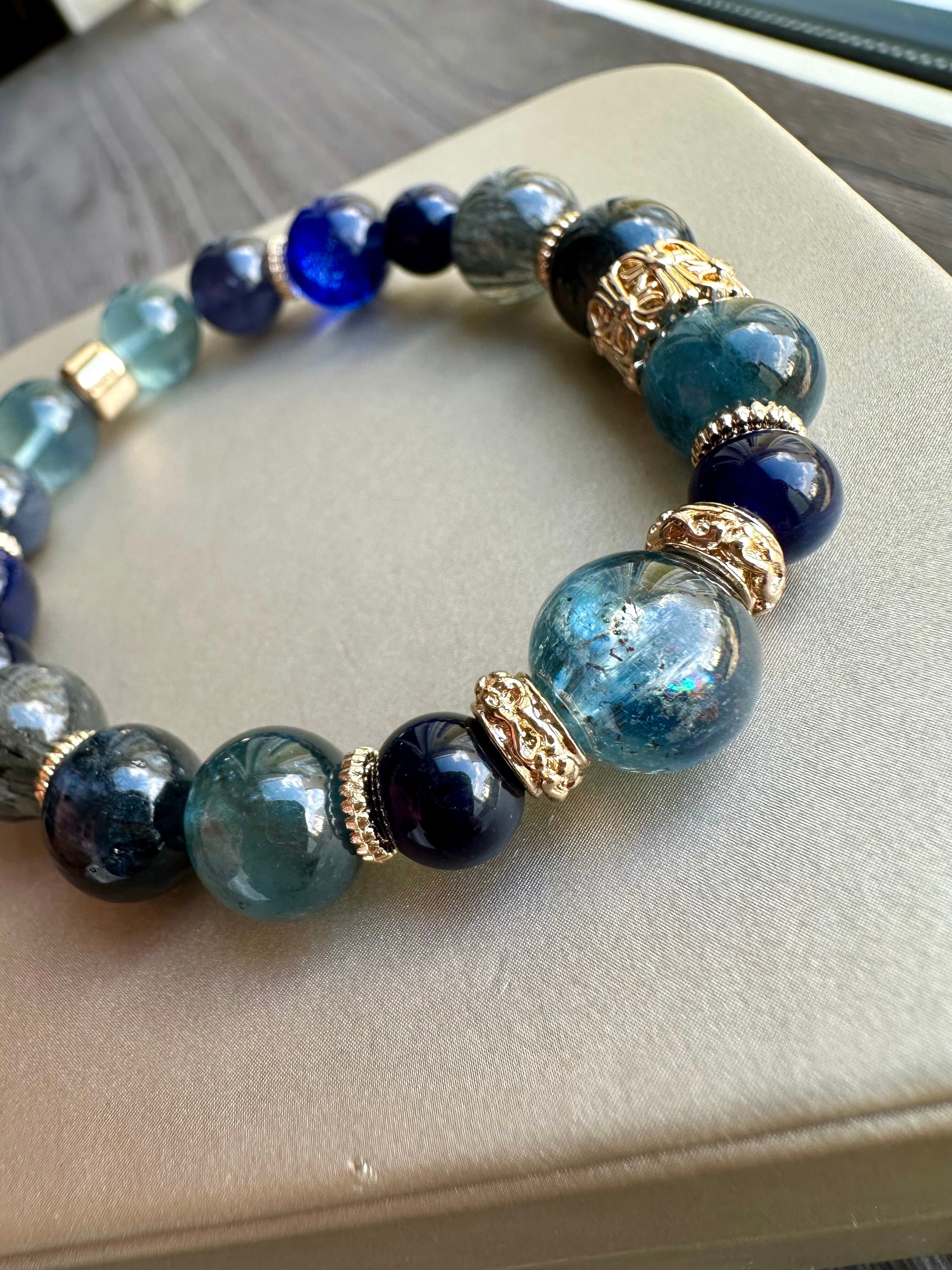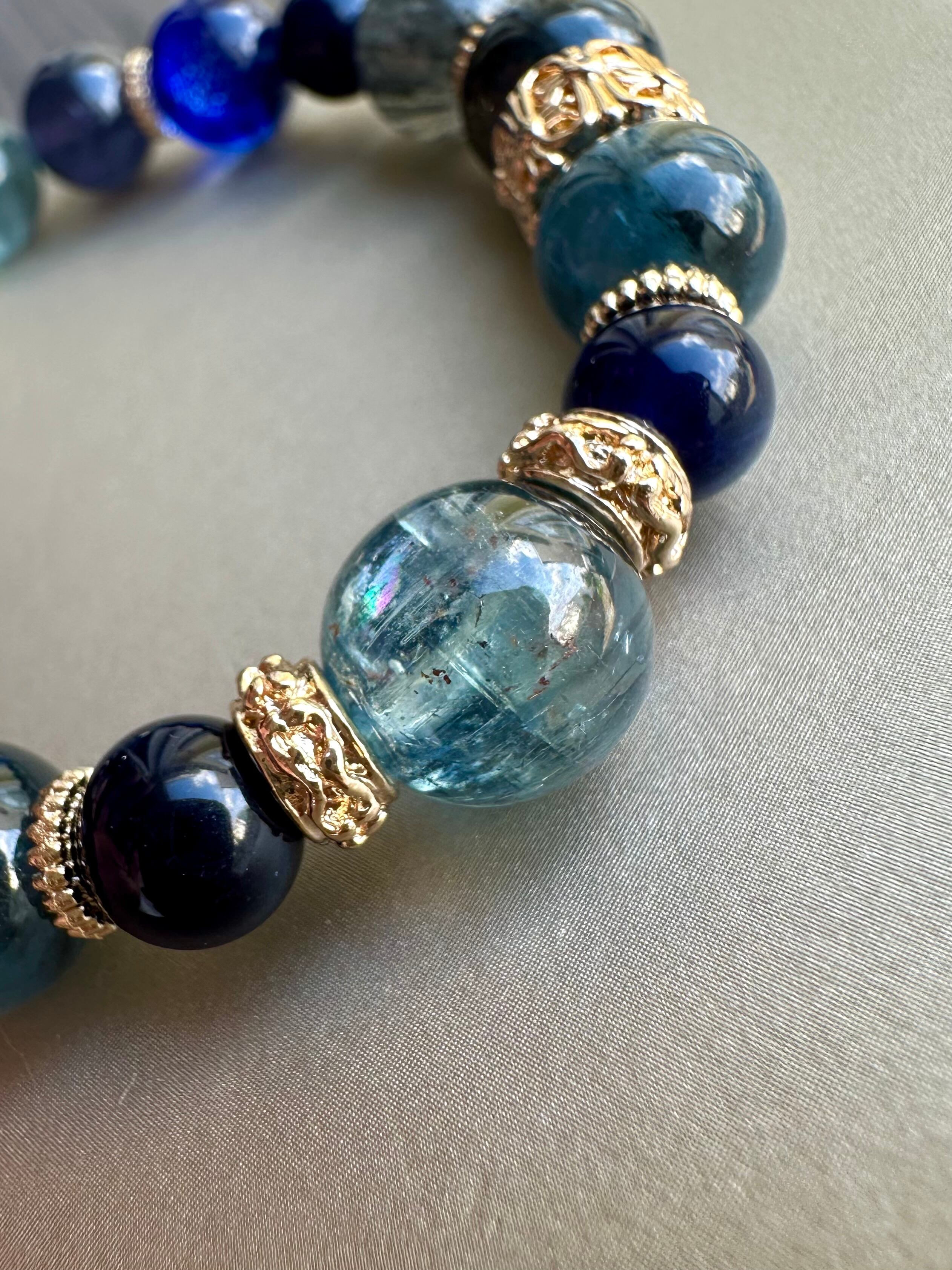 カイヤナイトインクォーツ×インペリアルソーダーライト×モスアクアマリン×ダークカイヤナイト×ブルールチルクォーツ×ブルーシャイニークォーツ×アイオライト×ブルーフローライト