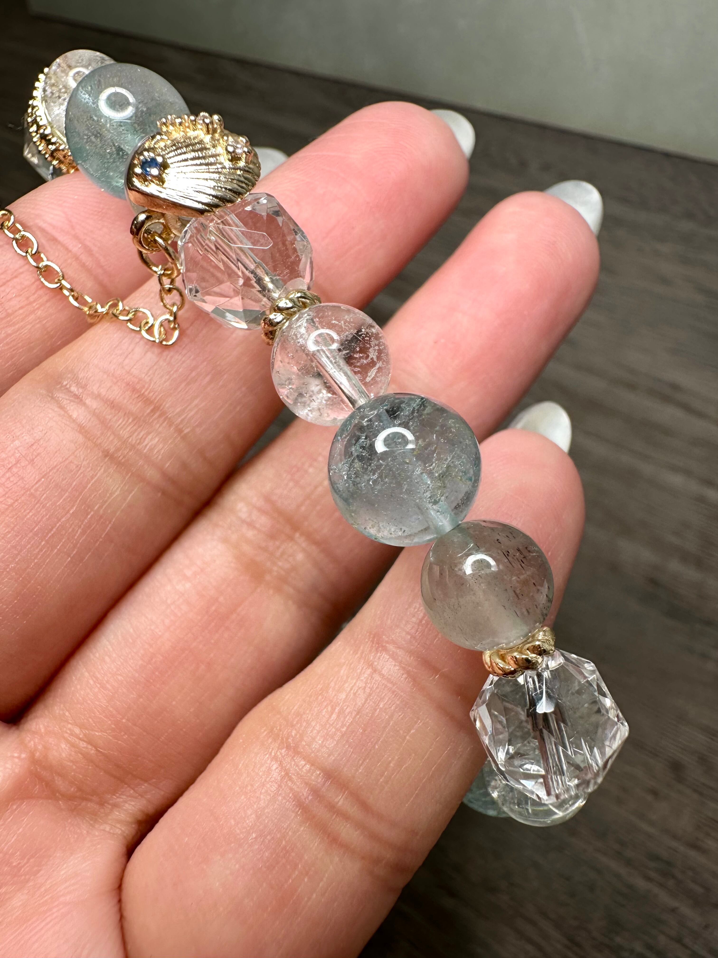 グリーントパーズ×サンストーンインアクアマリン×マニカランクォーツ×水晶