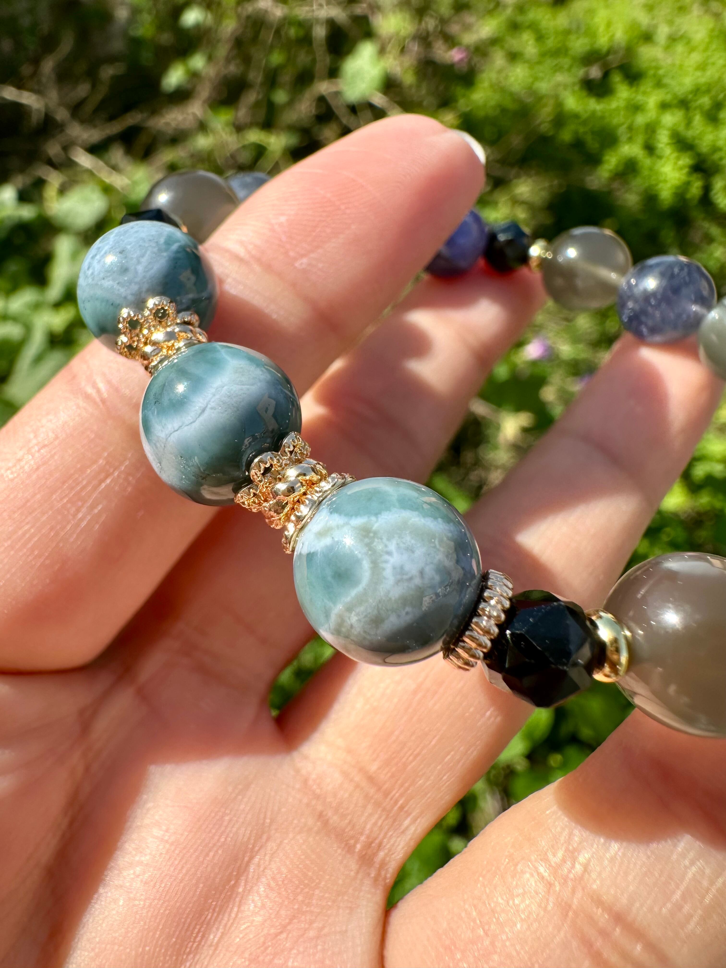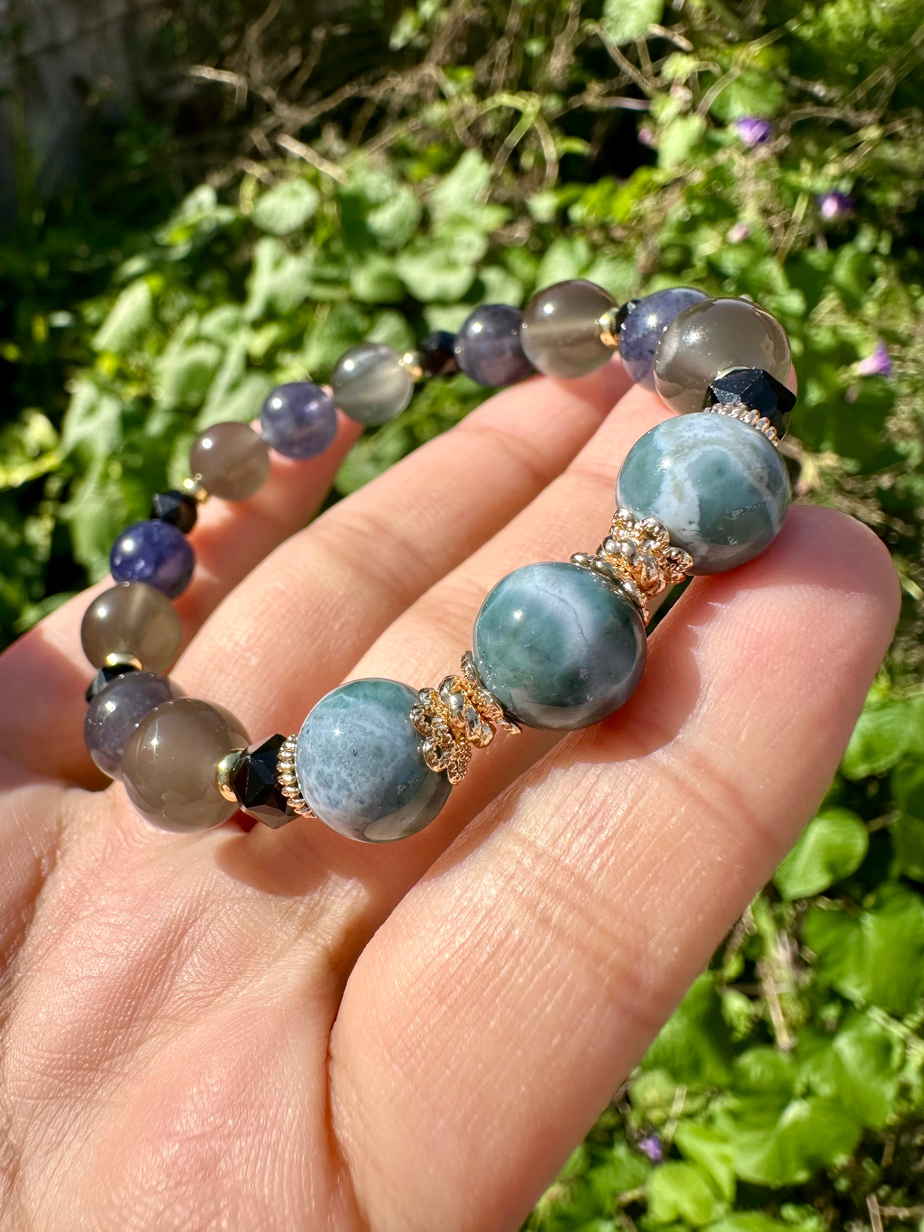 パープルラリマー×ブラックムーンストーン×アイオライト×ブラックスピネル