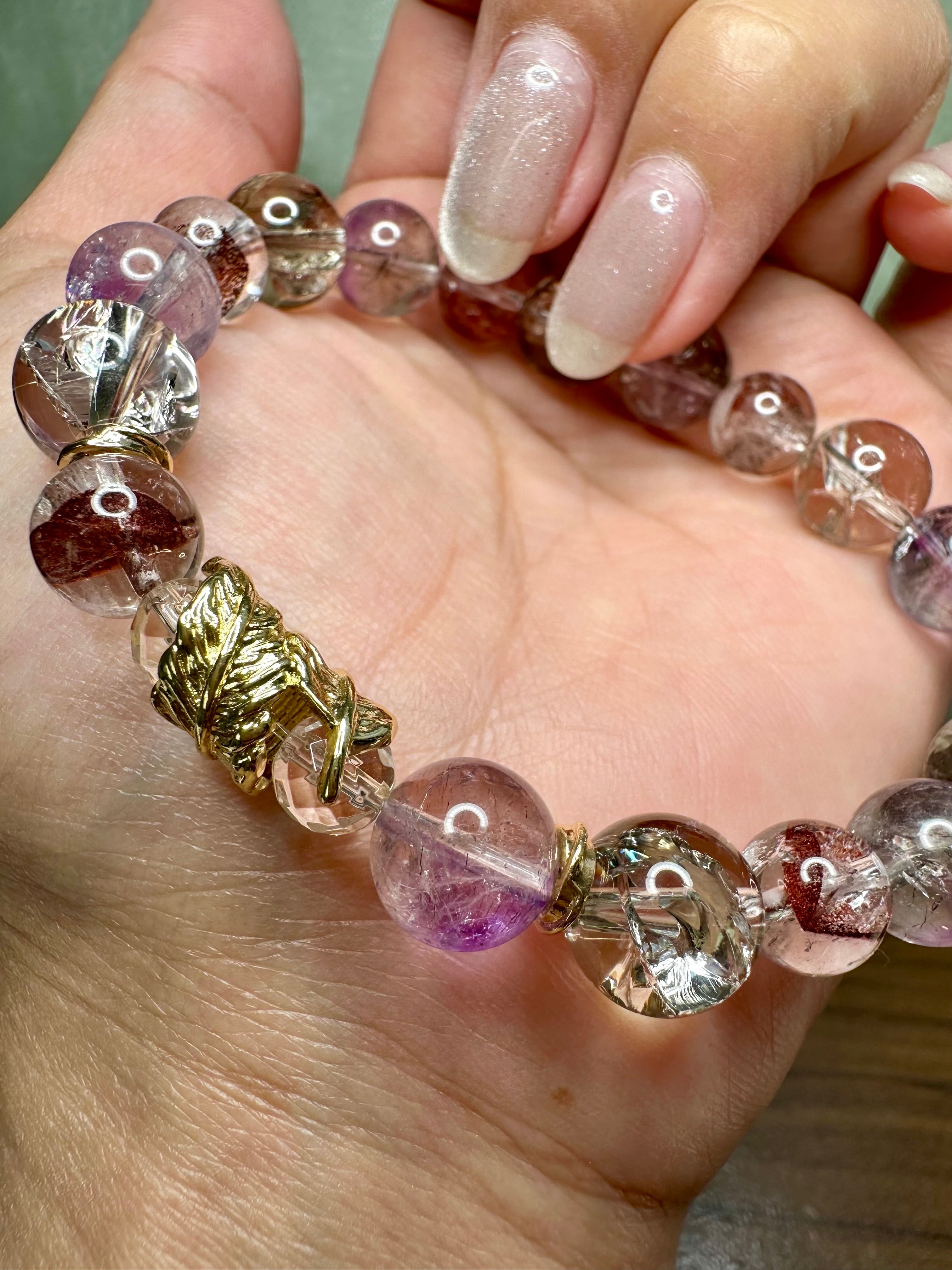 レッドファントムクォーツ×ライトスモーキーアイリスクォーツ×エレスチャルアメジスト