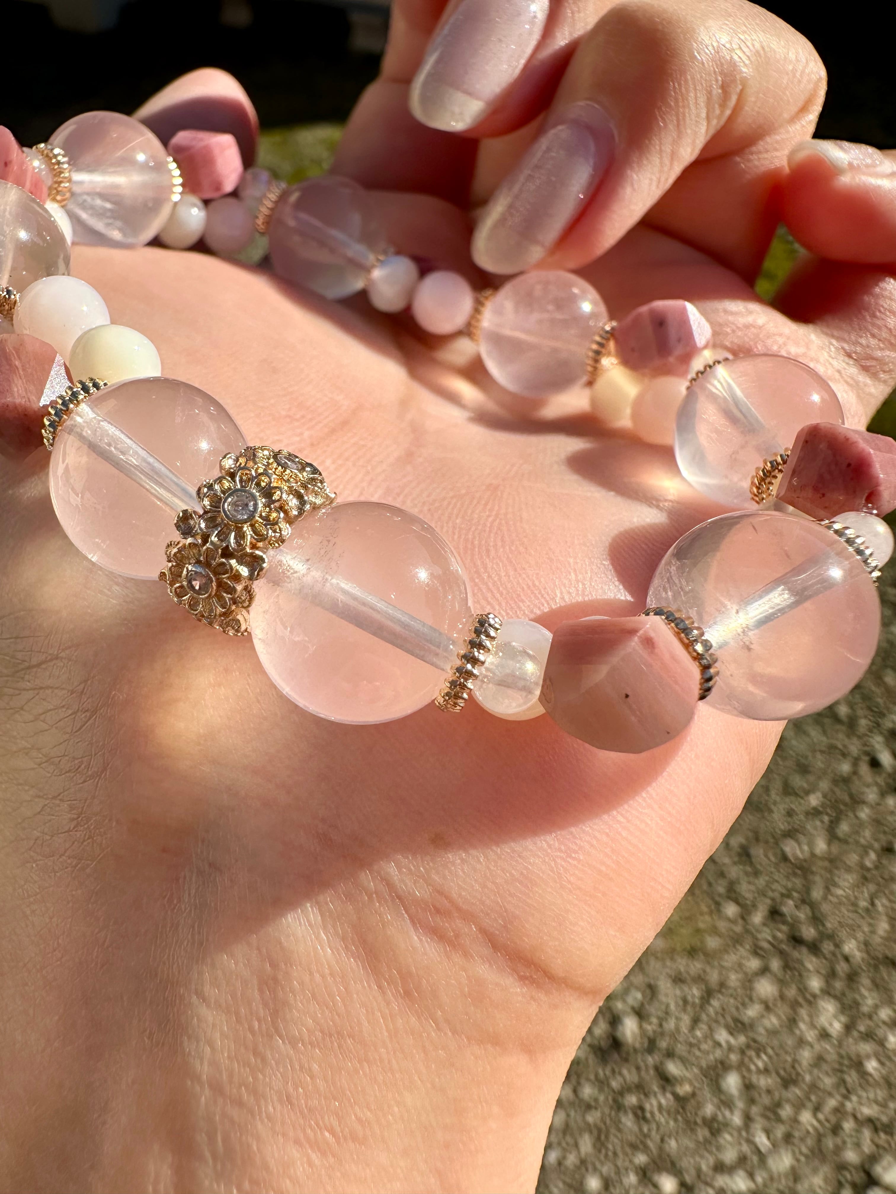 スターローズクォーツ×ピーモンタイト×ローズオーラ×ピンクオパール×マザーオブパール
