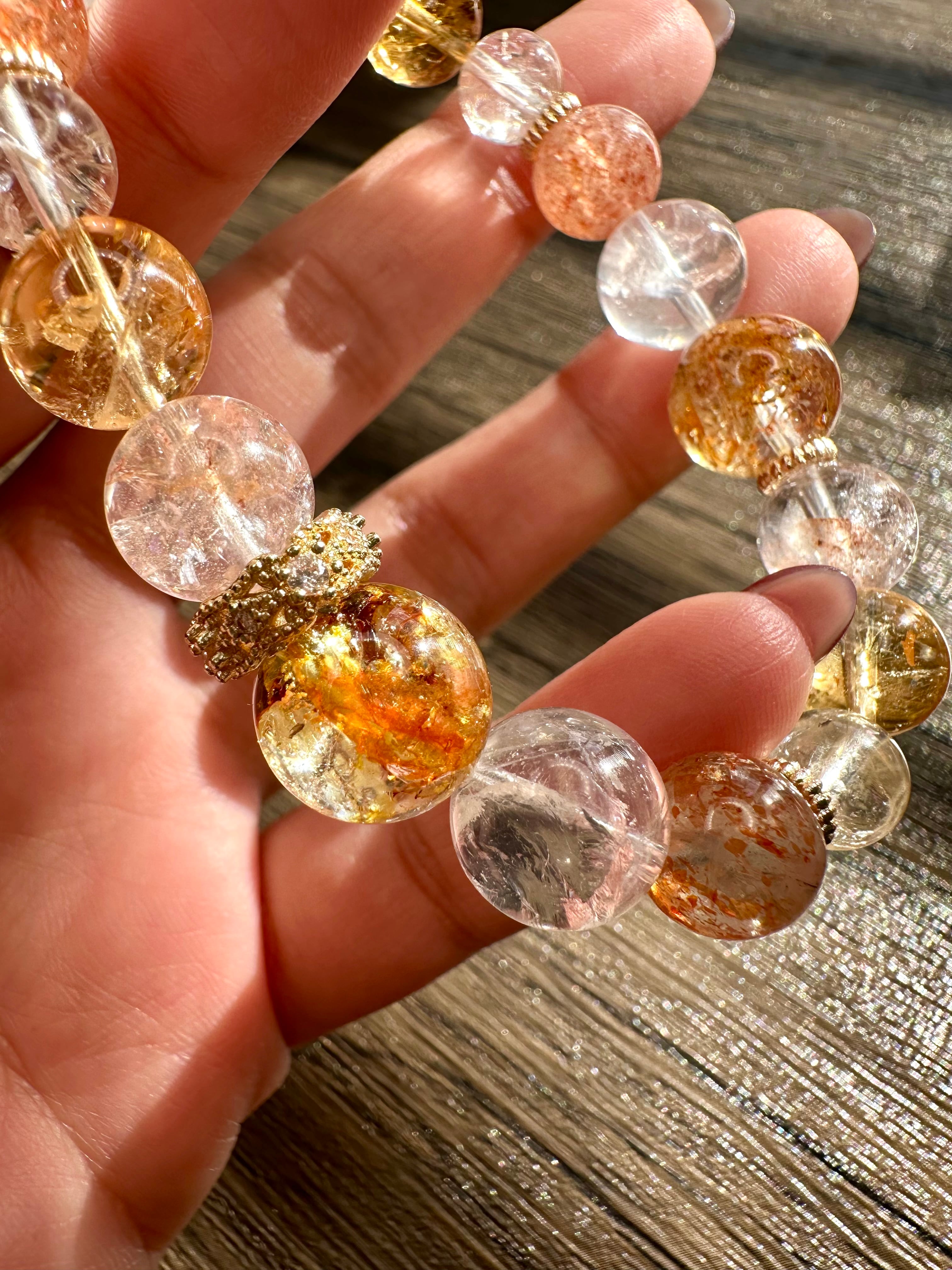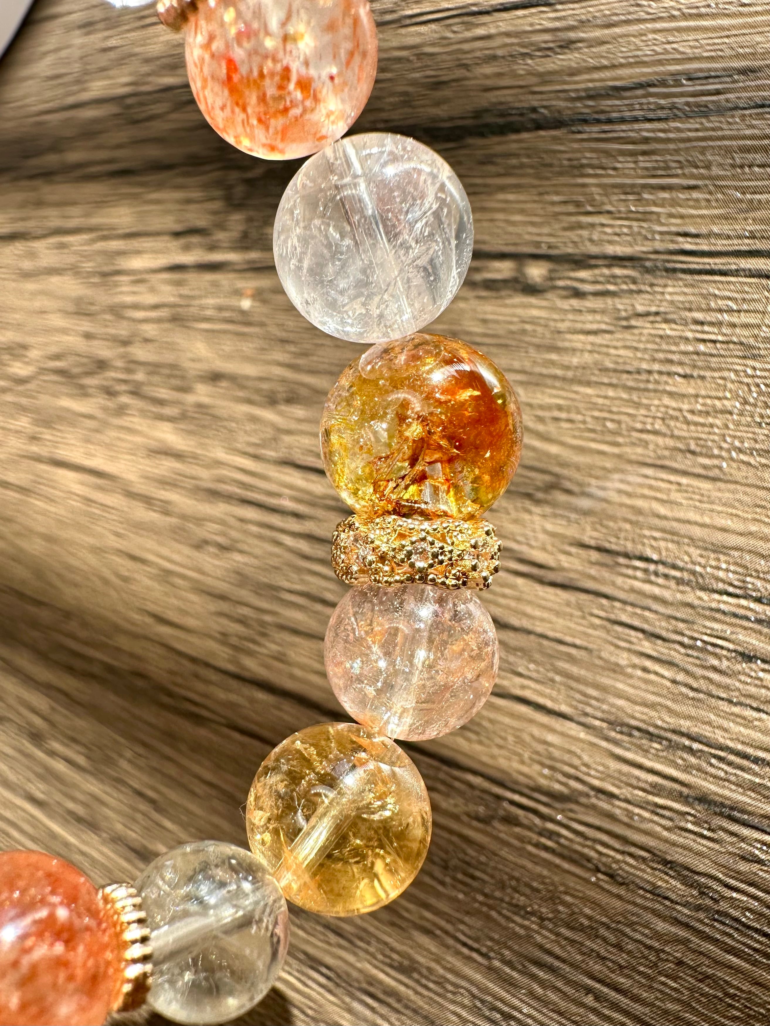 イエロートパーズ×ローズアイリスクォーツ×サンストーン×イエローマニカランクォーツ×シトリン×ピンクマニカランクォーツ