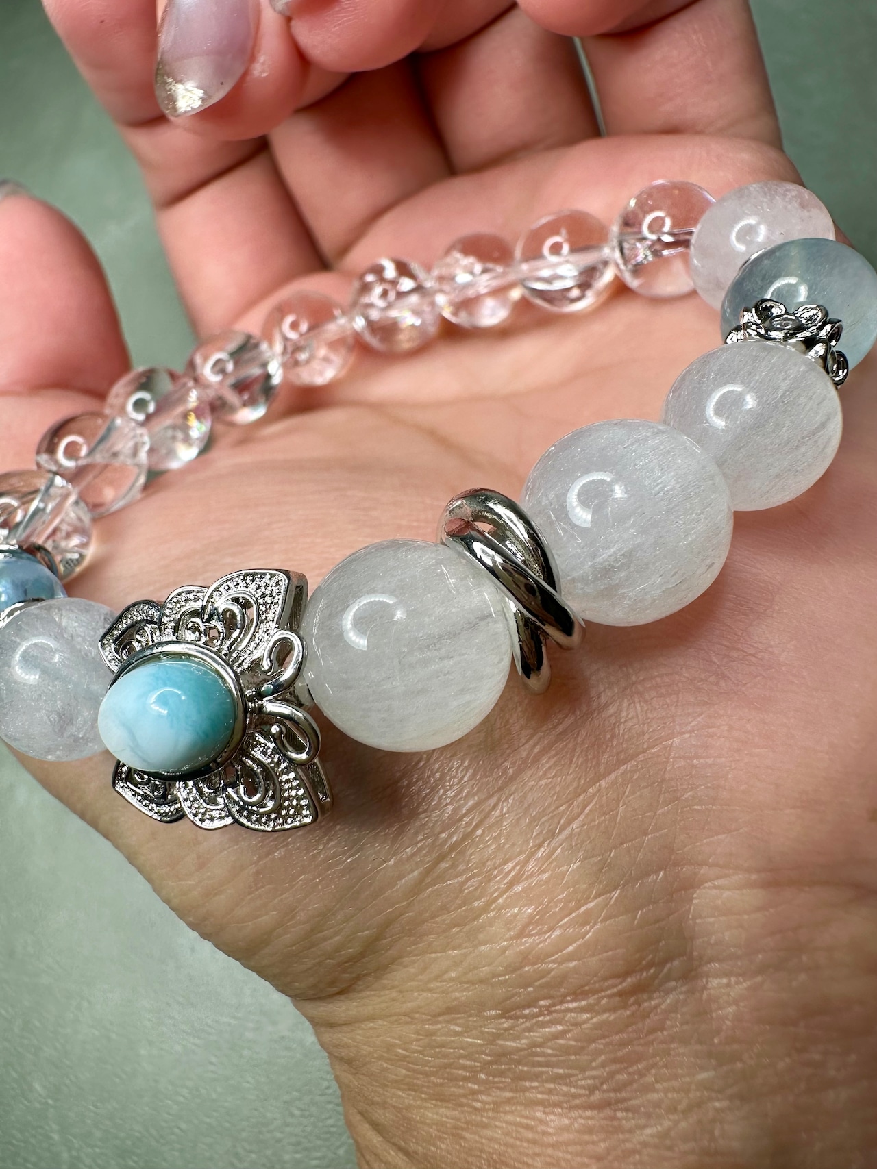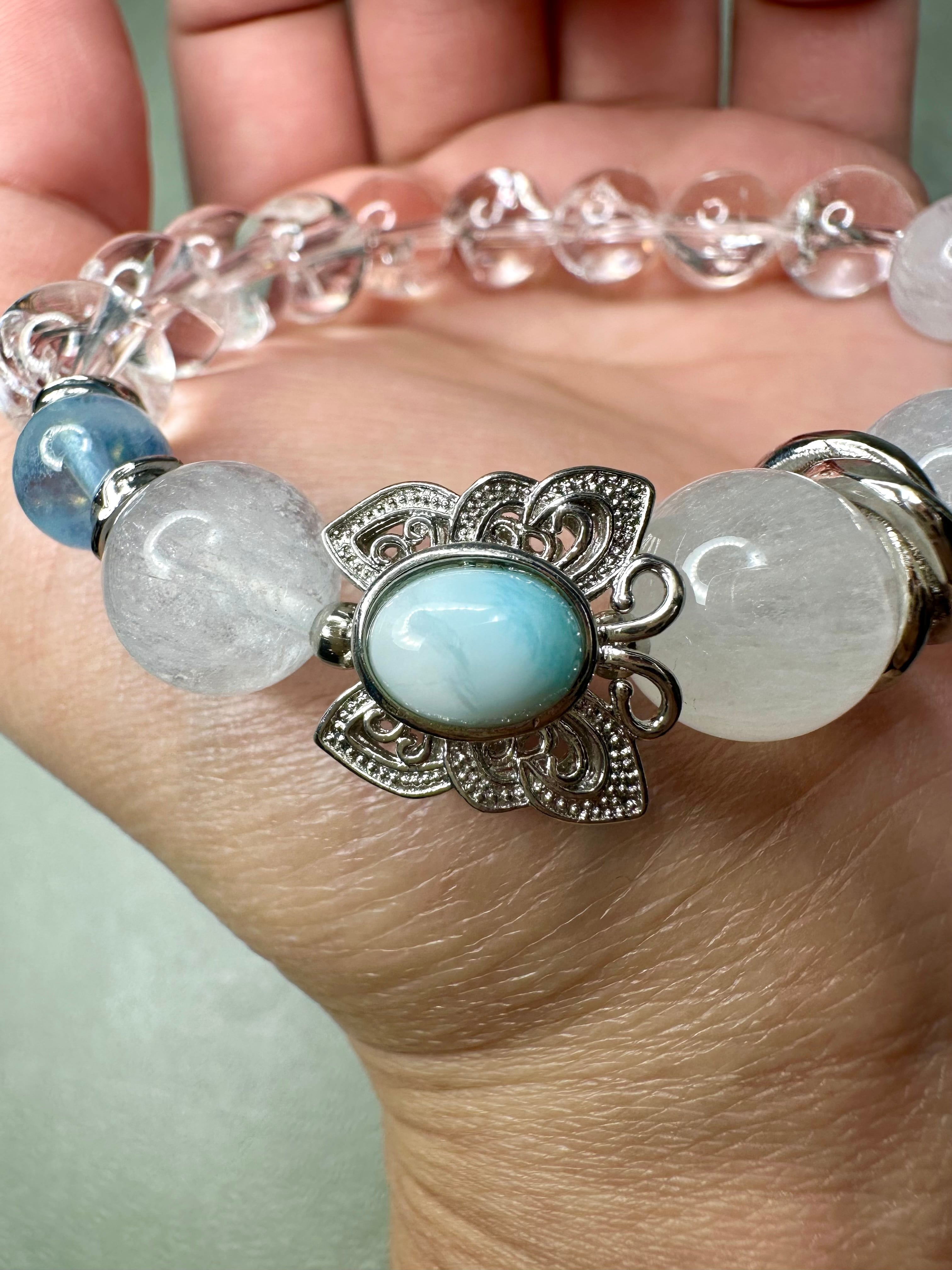 ラリマー×ホワイトフェザーインフローライト×アクアマリン×アイリスクォーツ