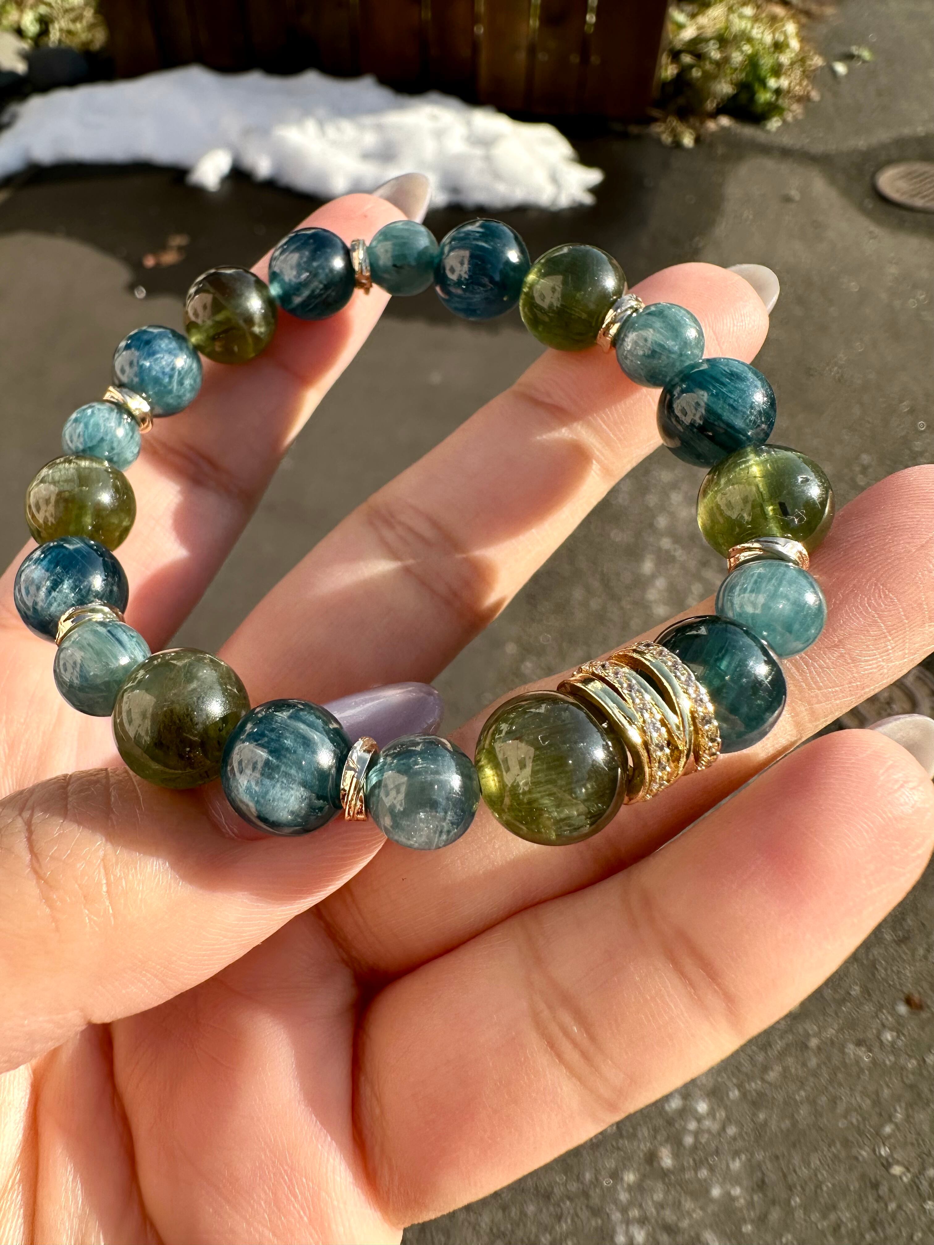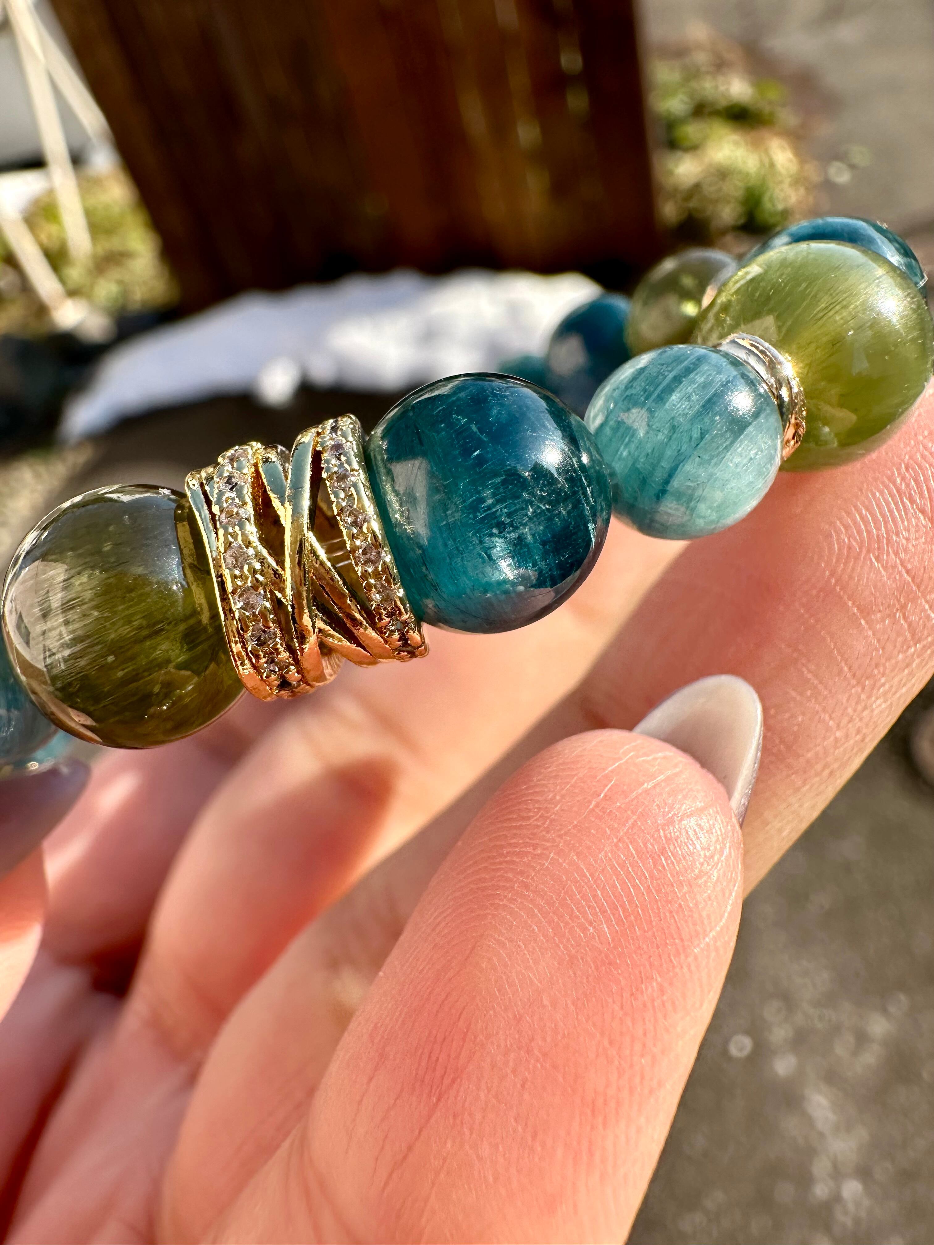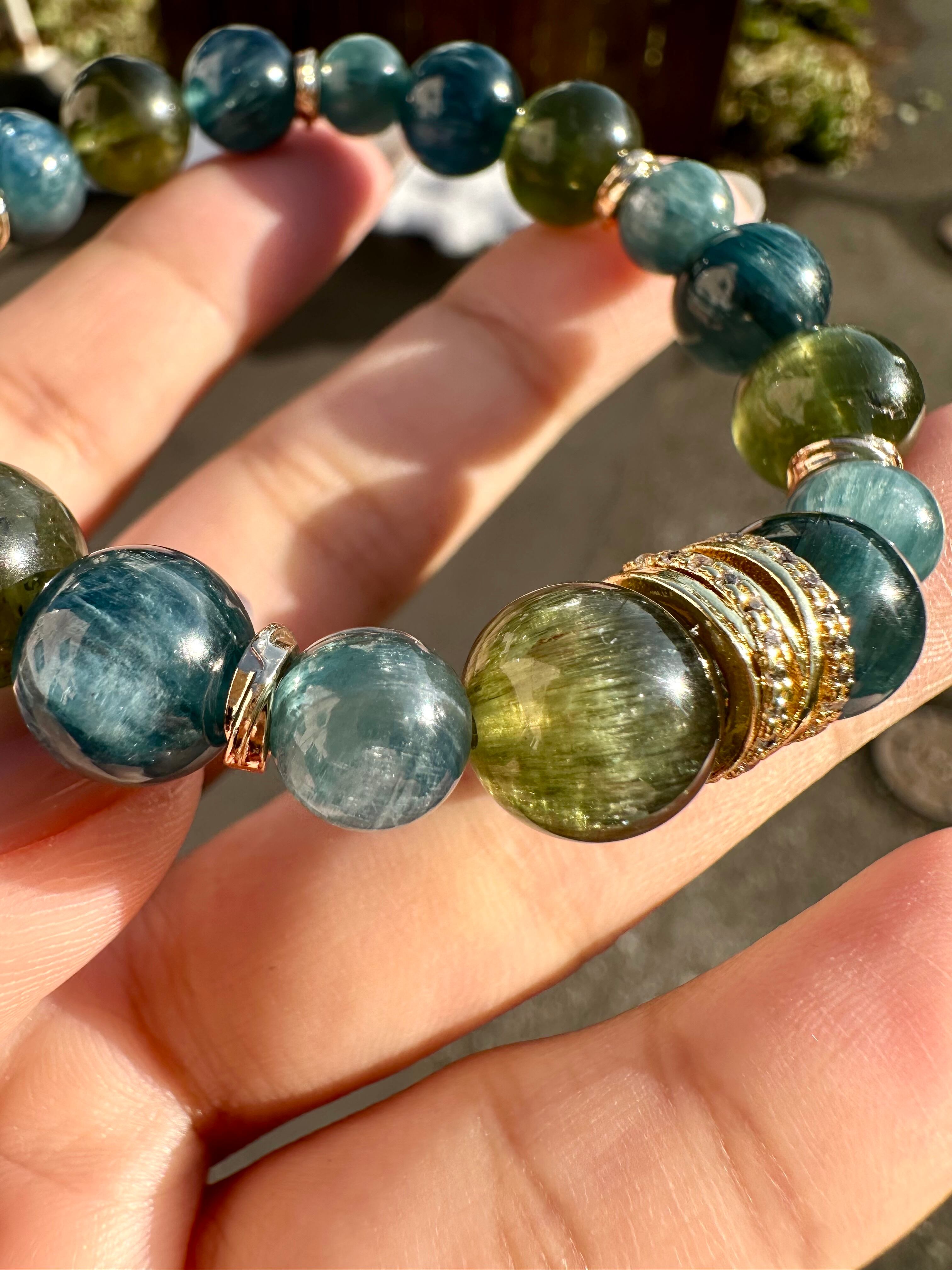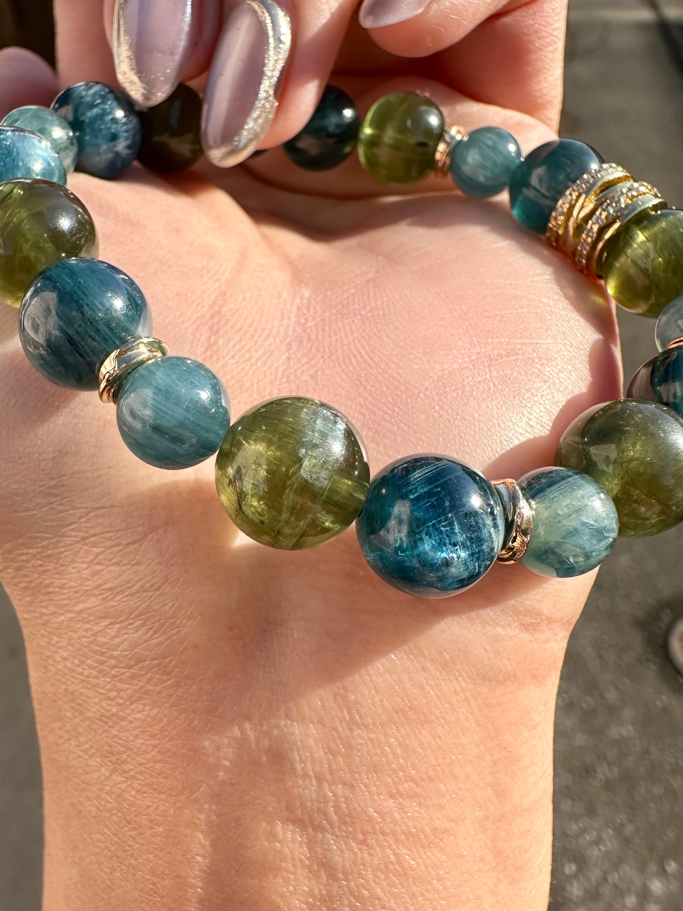 グリーンキャッツアイアパタイト×グリーンカイヤナイト×ダークカイヤナイト