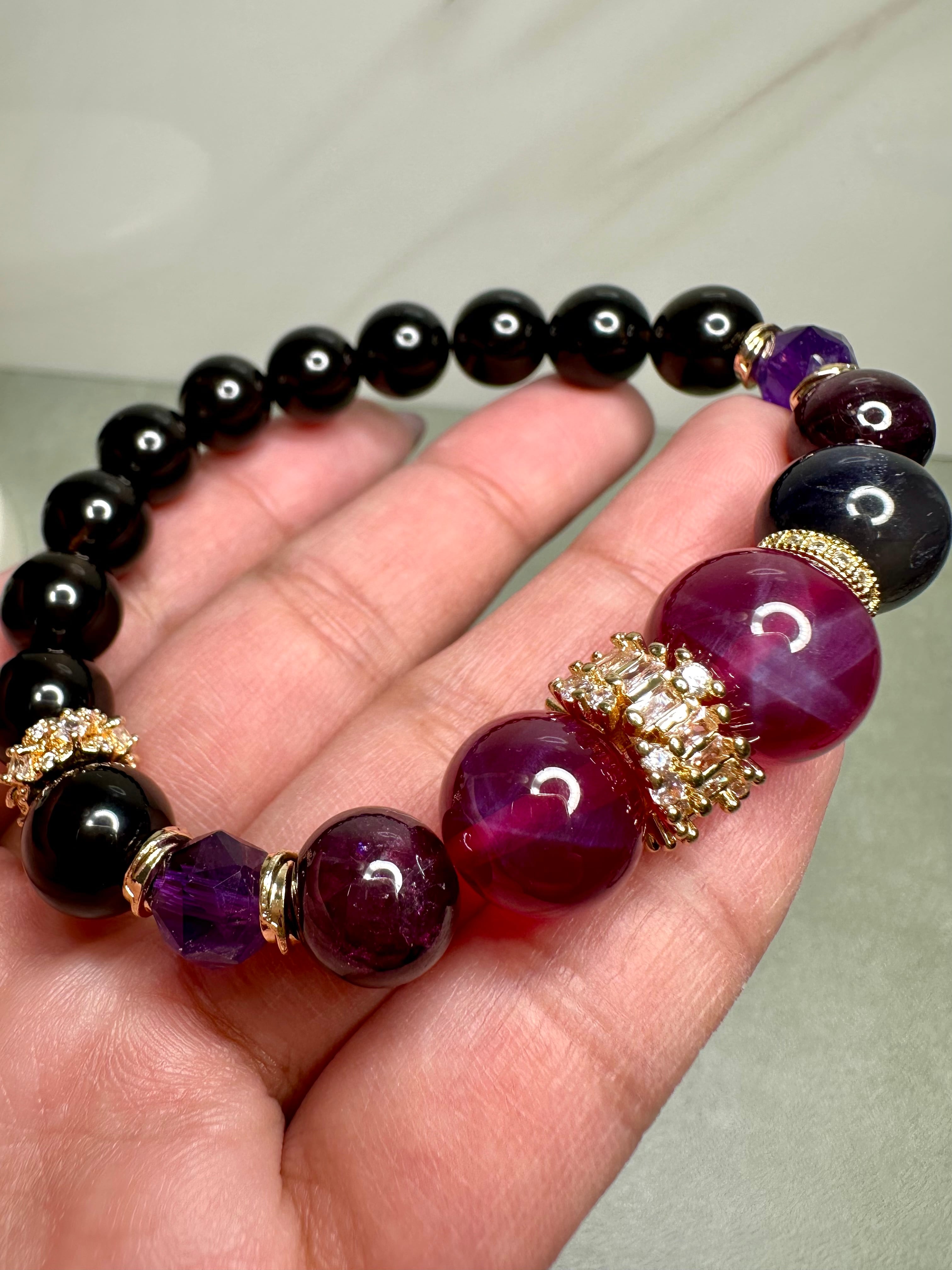 シンセティックルビー×アイオライト×ロードライトガーネット×アメジスト×モリオン