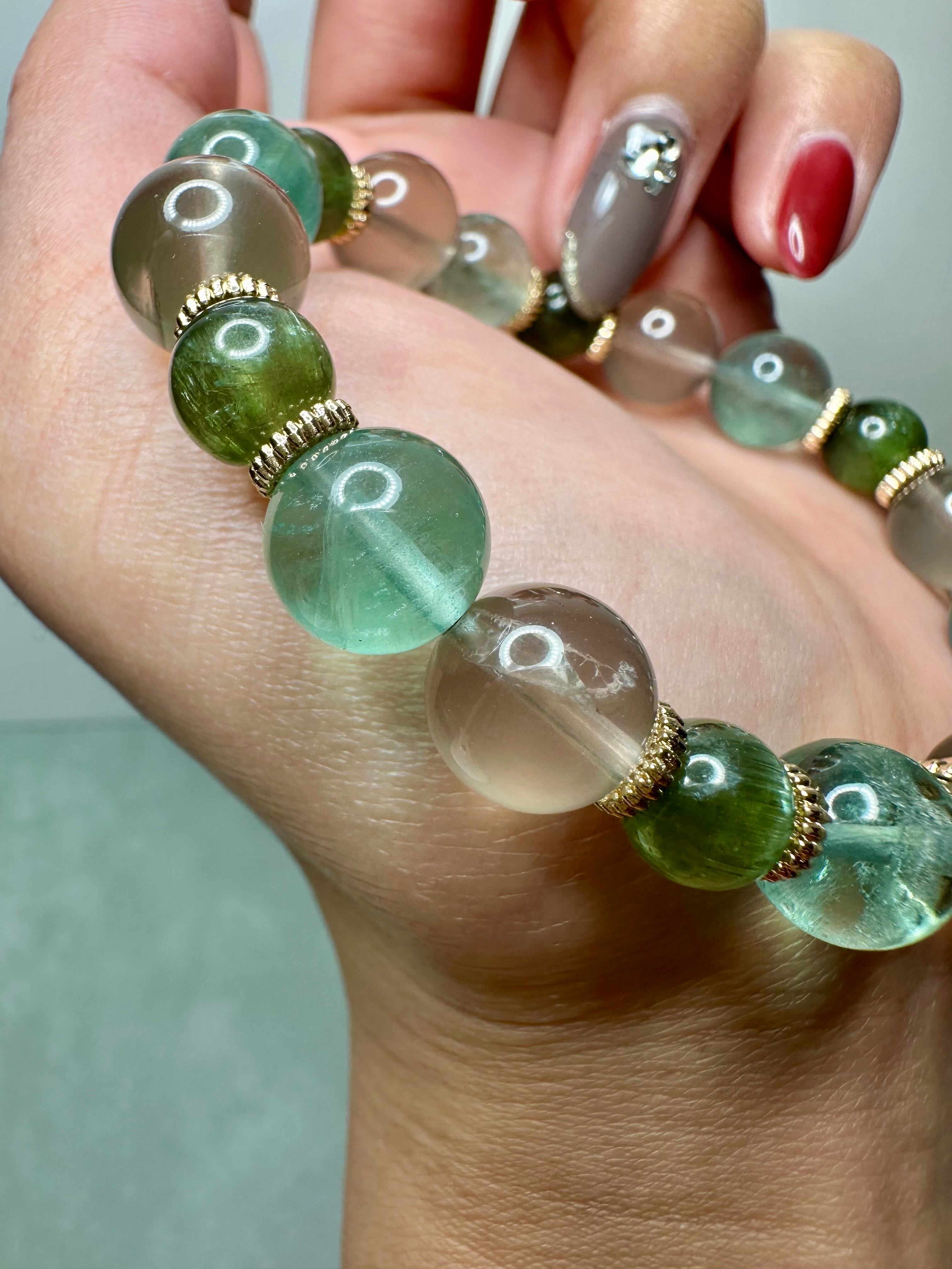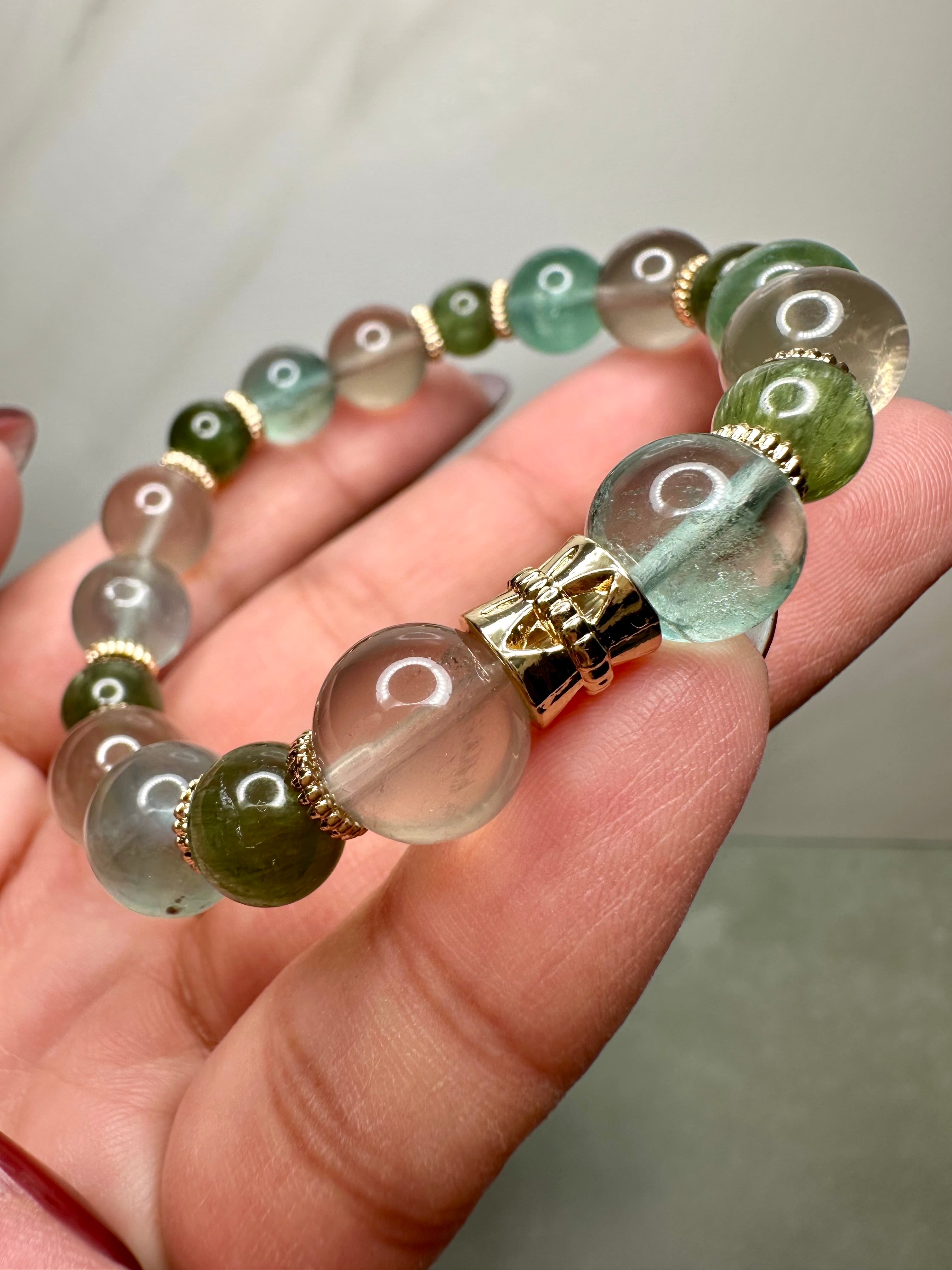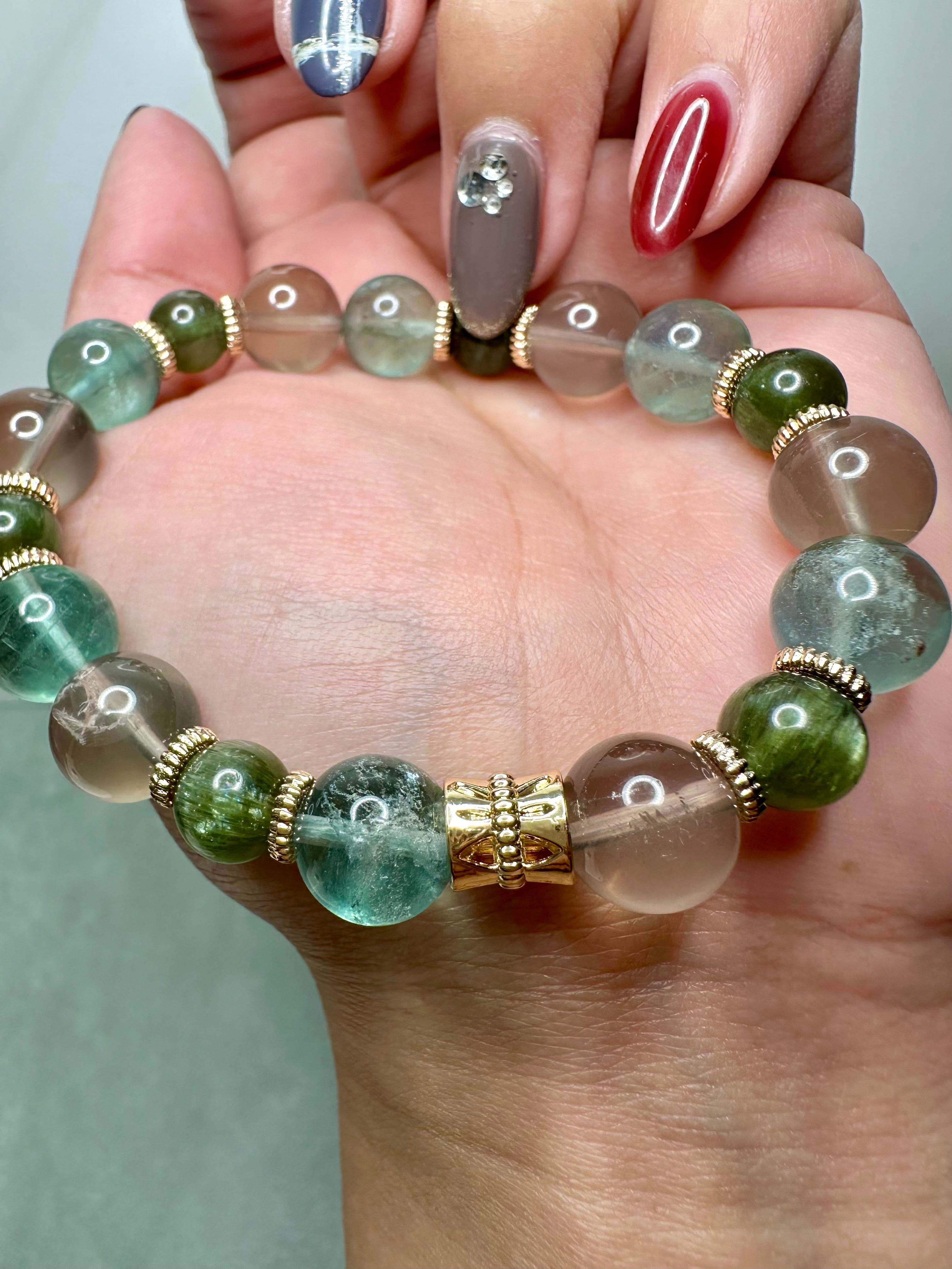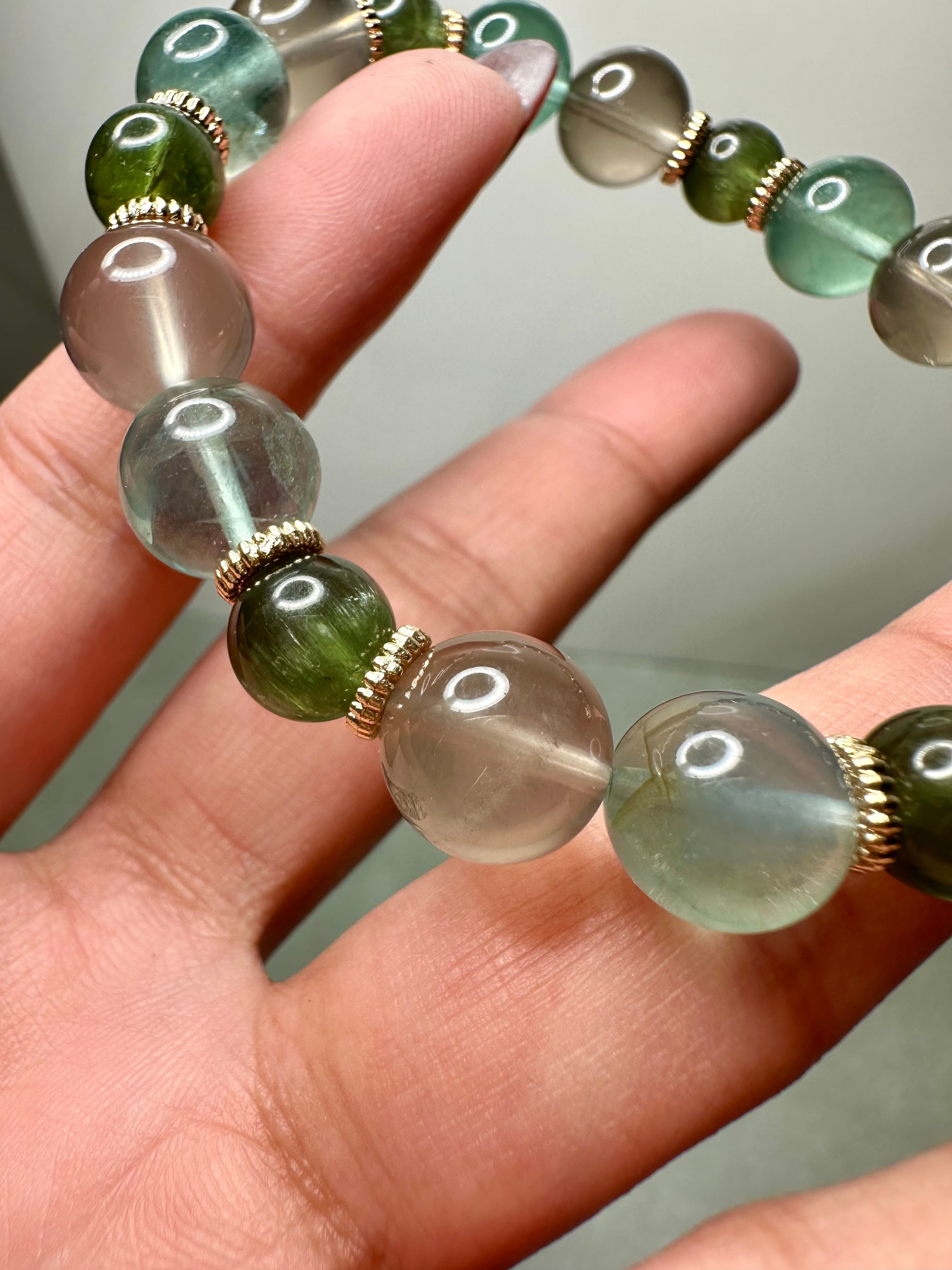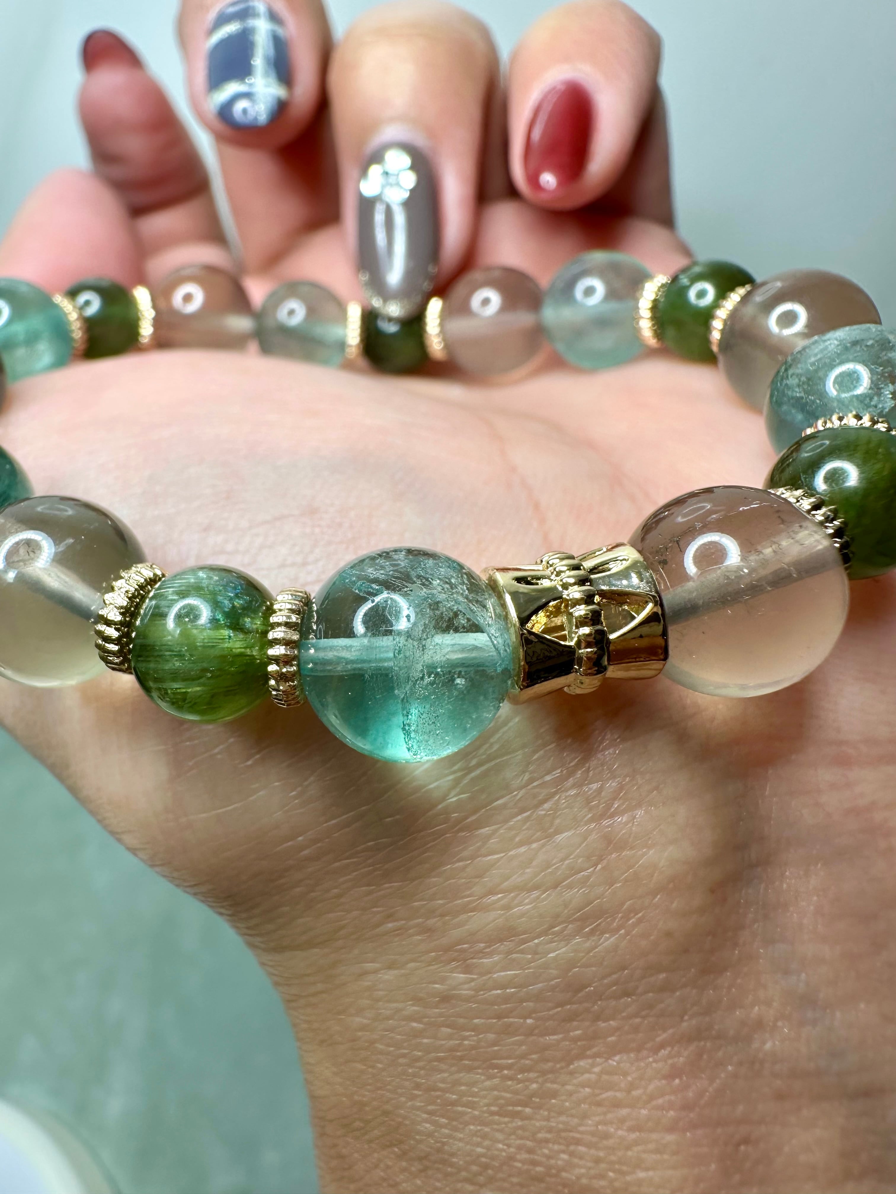 スタースモーキークォーツ×ブルーグリーンフローライト×グリーンキャッツアイアパタイト