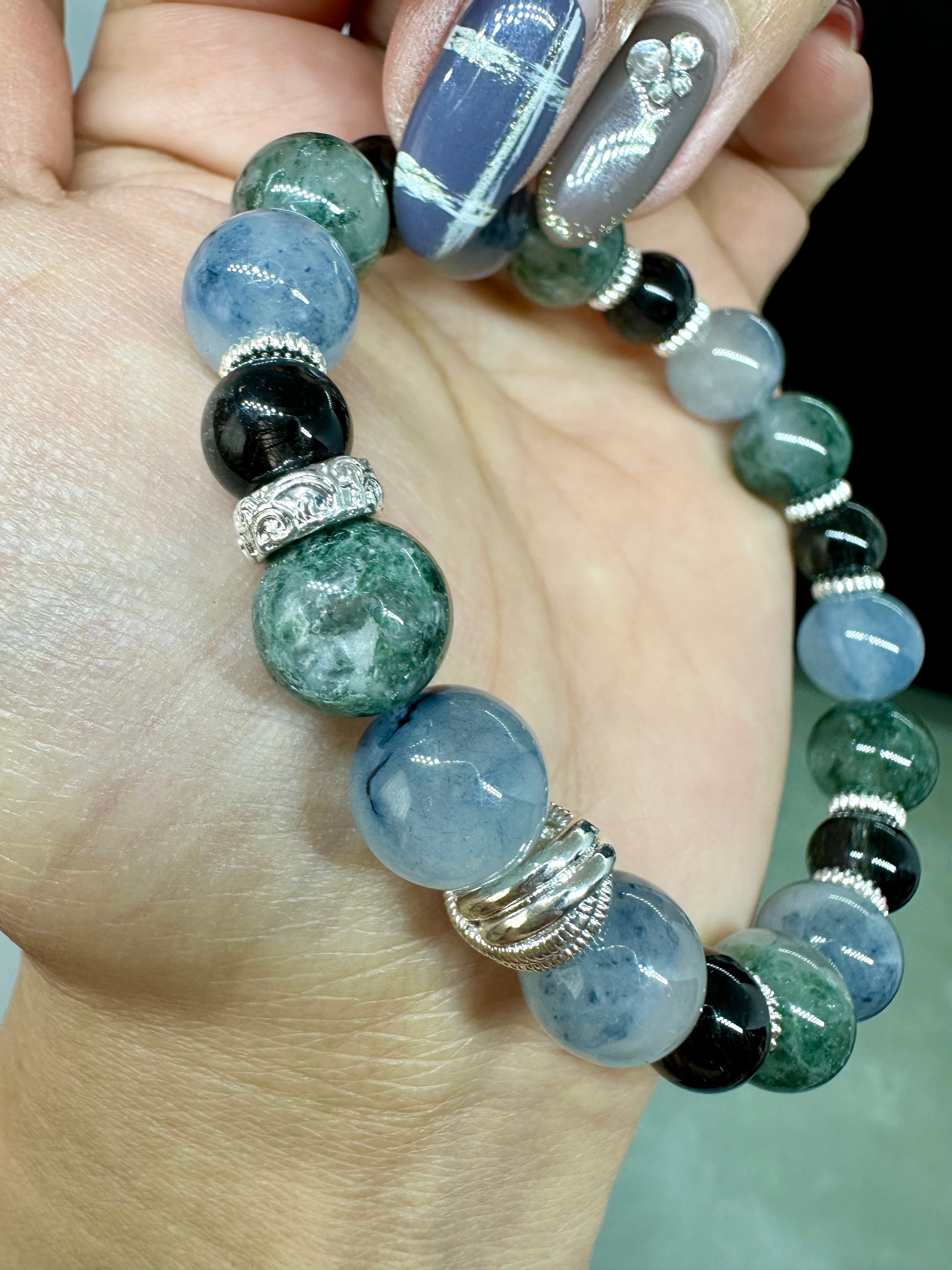 ブルートルマリンインクォーツ×グリーンマイカインクォーツ×ブラックルチルクォーツ