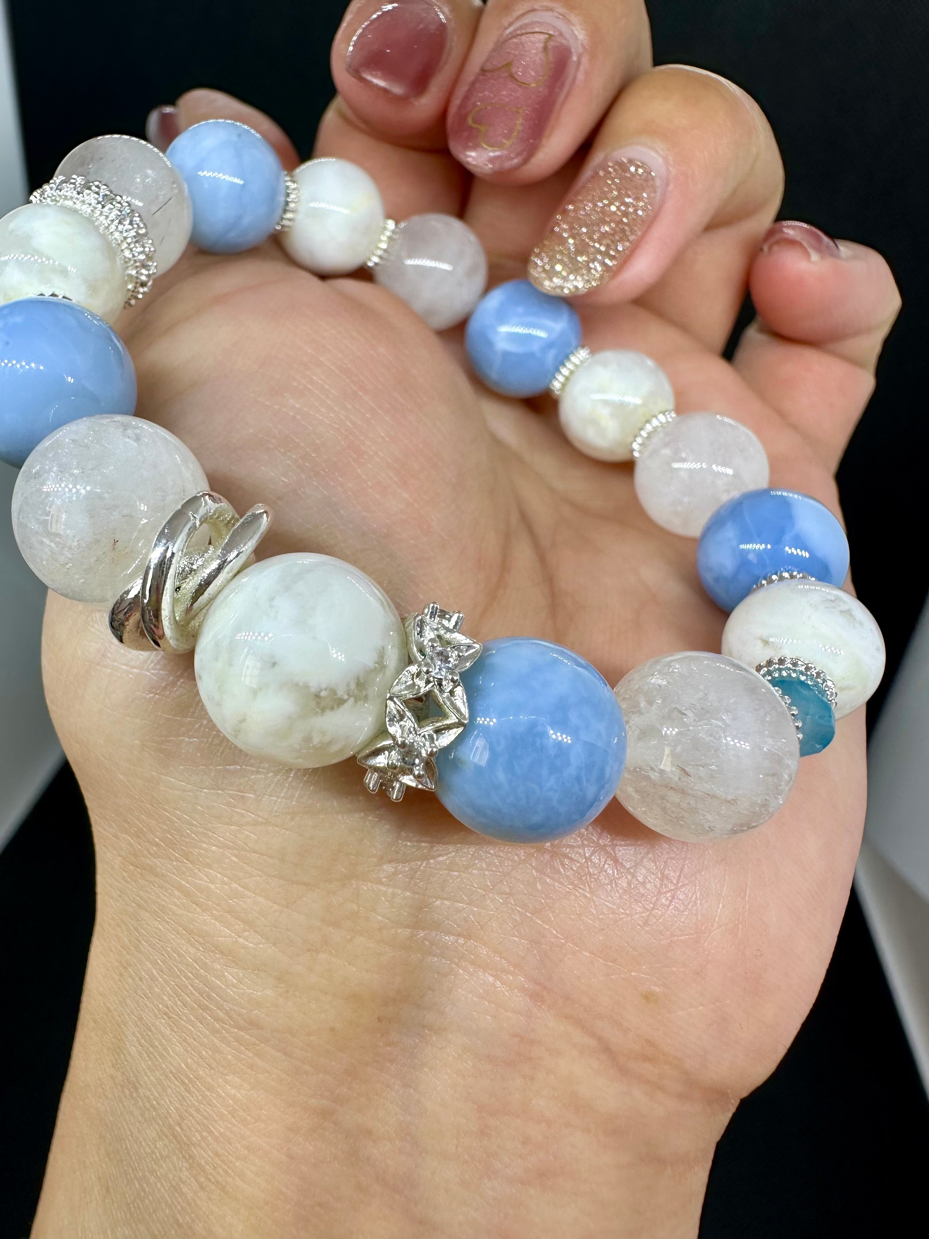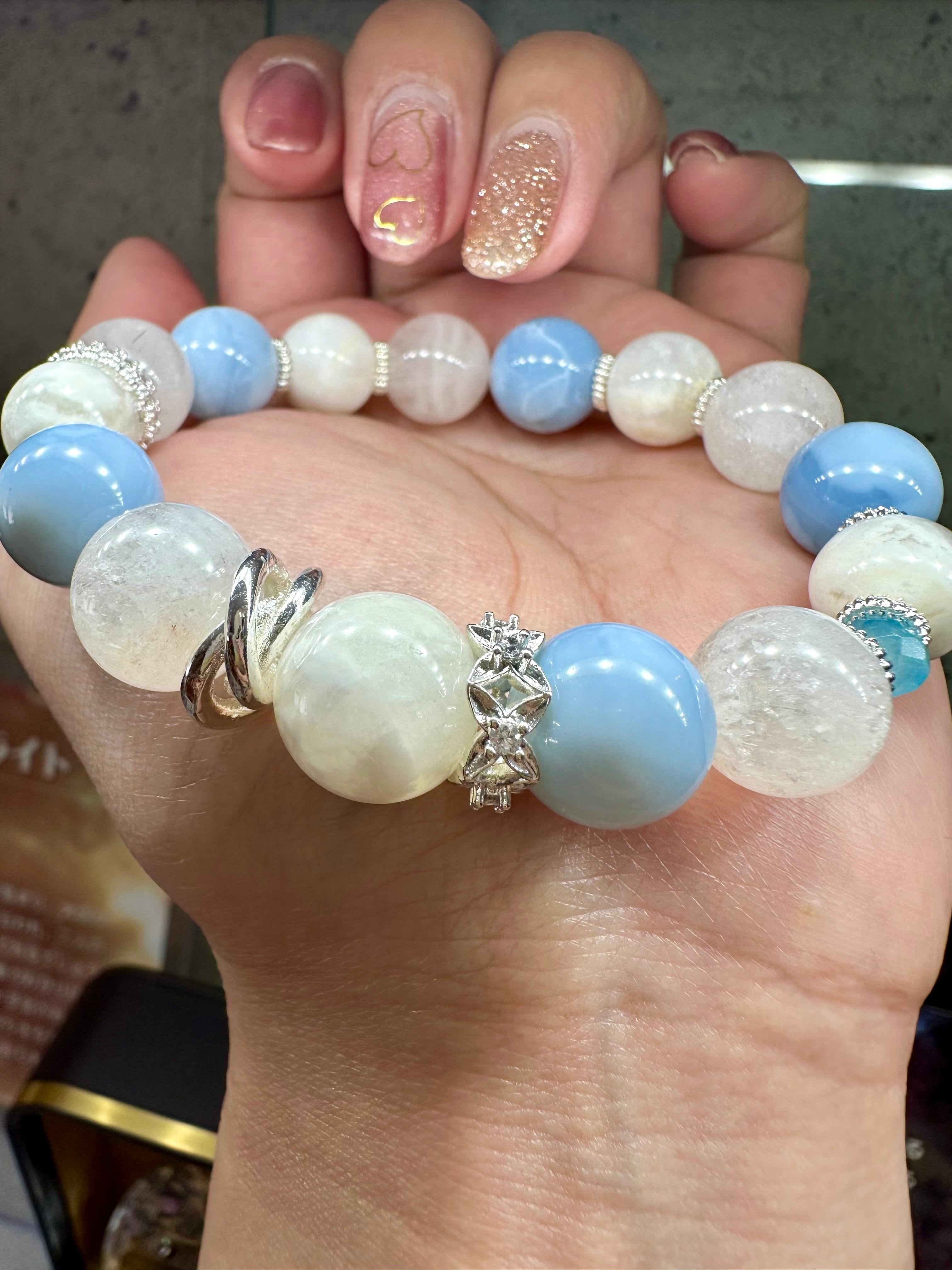 セリサイトインクォーツ×ブルーオパール×ホワイトサゲニティッククォーツ×ブルートパーズ