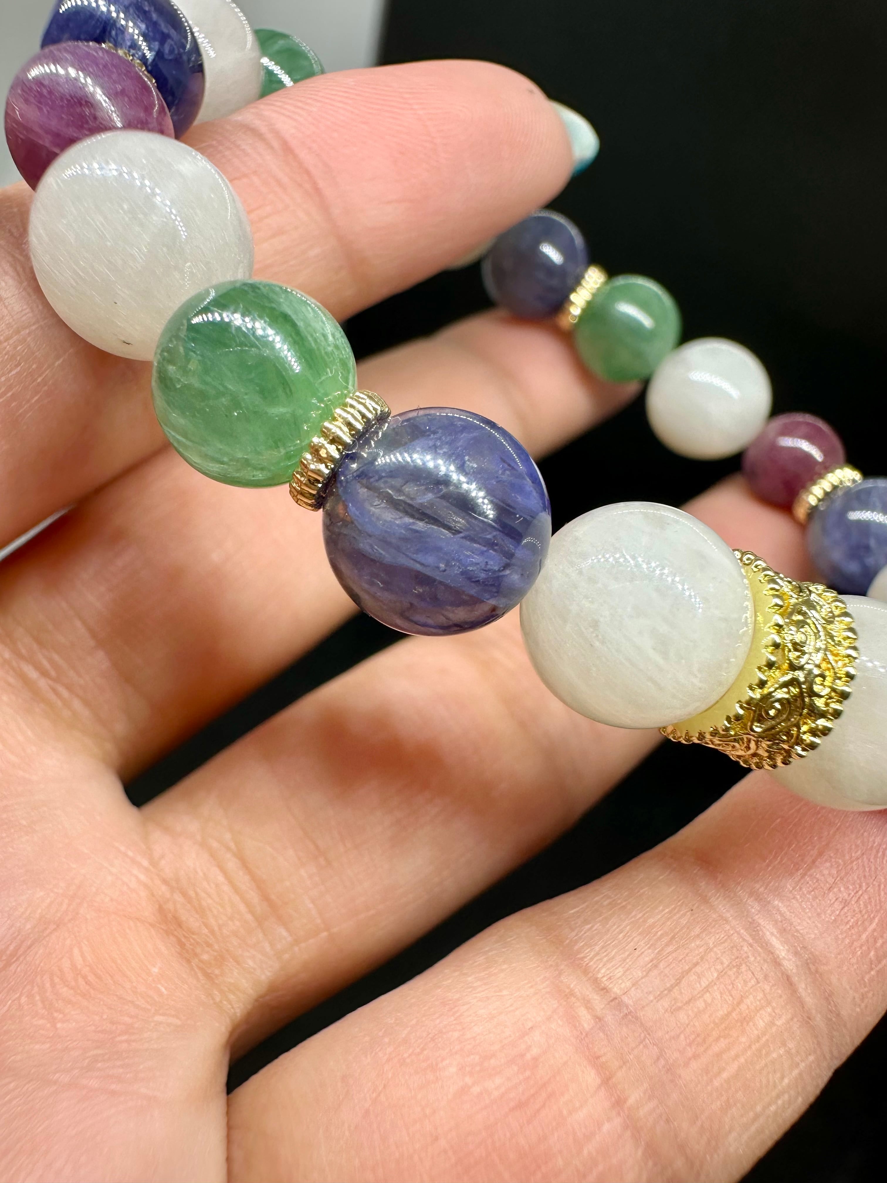 サゲニティッククォーツ×ルビー×グリーンカイヤナイト×アイオライト