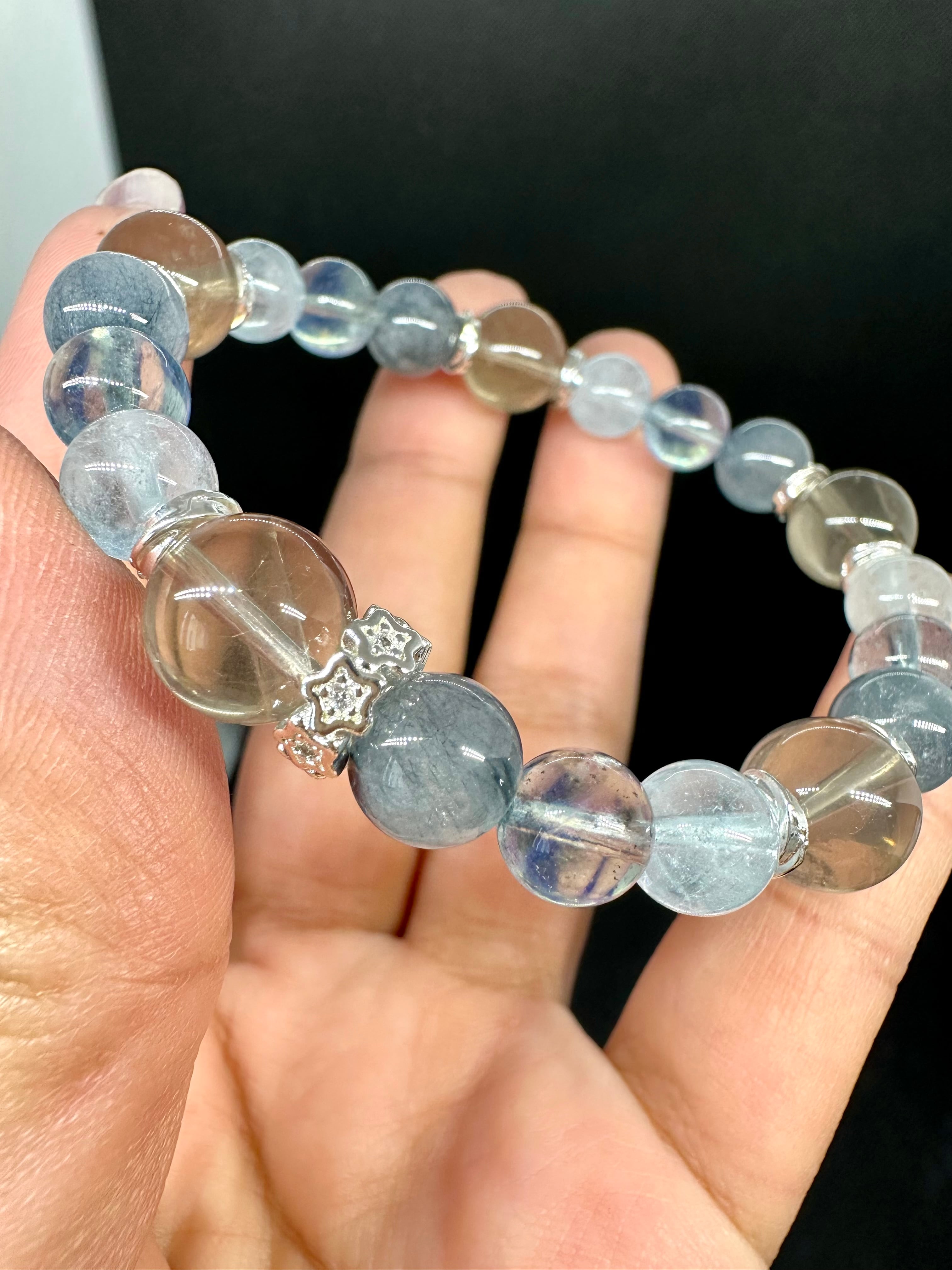 スタースモーキークォーツ×ブルーサゲニティッククォーツ×モスアクアマリン×ブルートパーズ