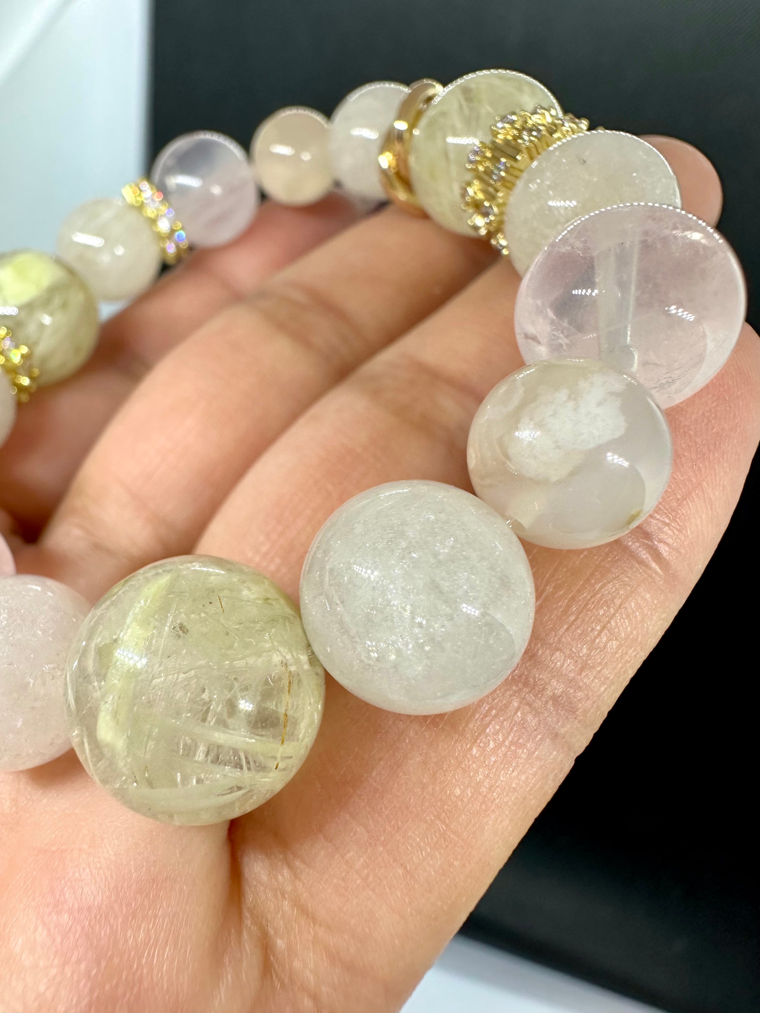 ホワイトルチルクォーツ×サゲニティッククォーツ×桜瑪瑙×スターローズクォーツ