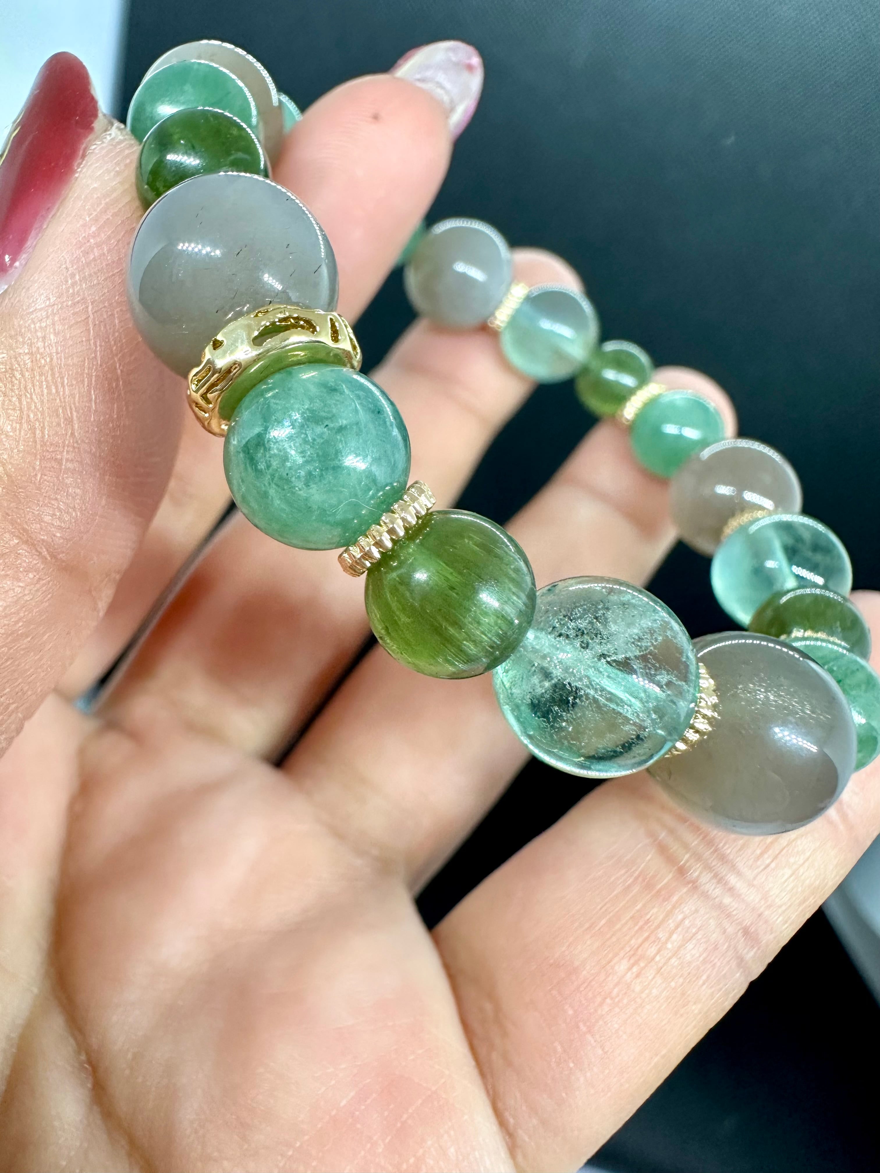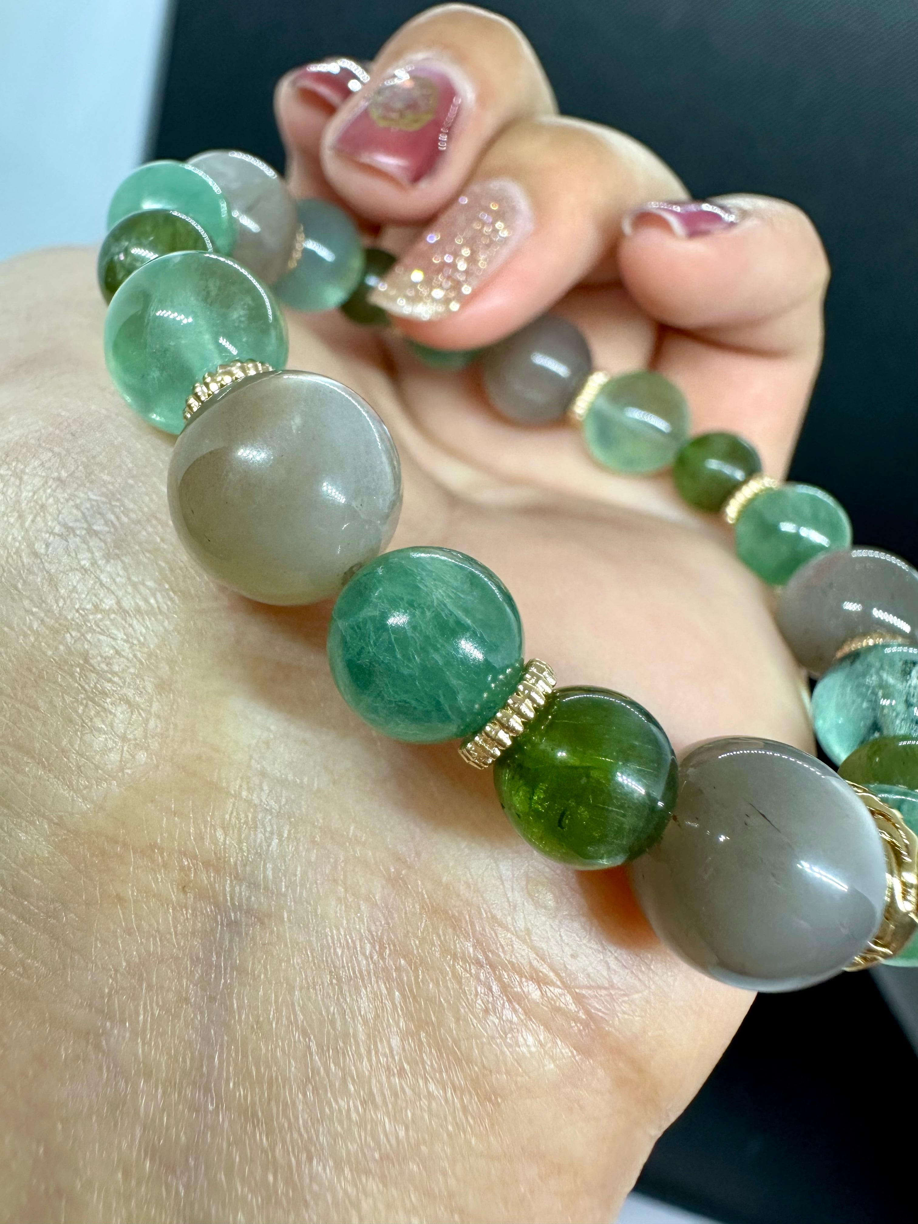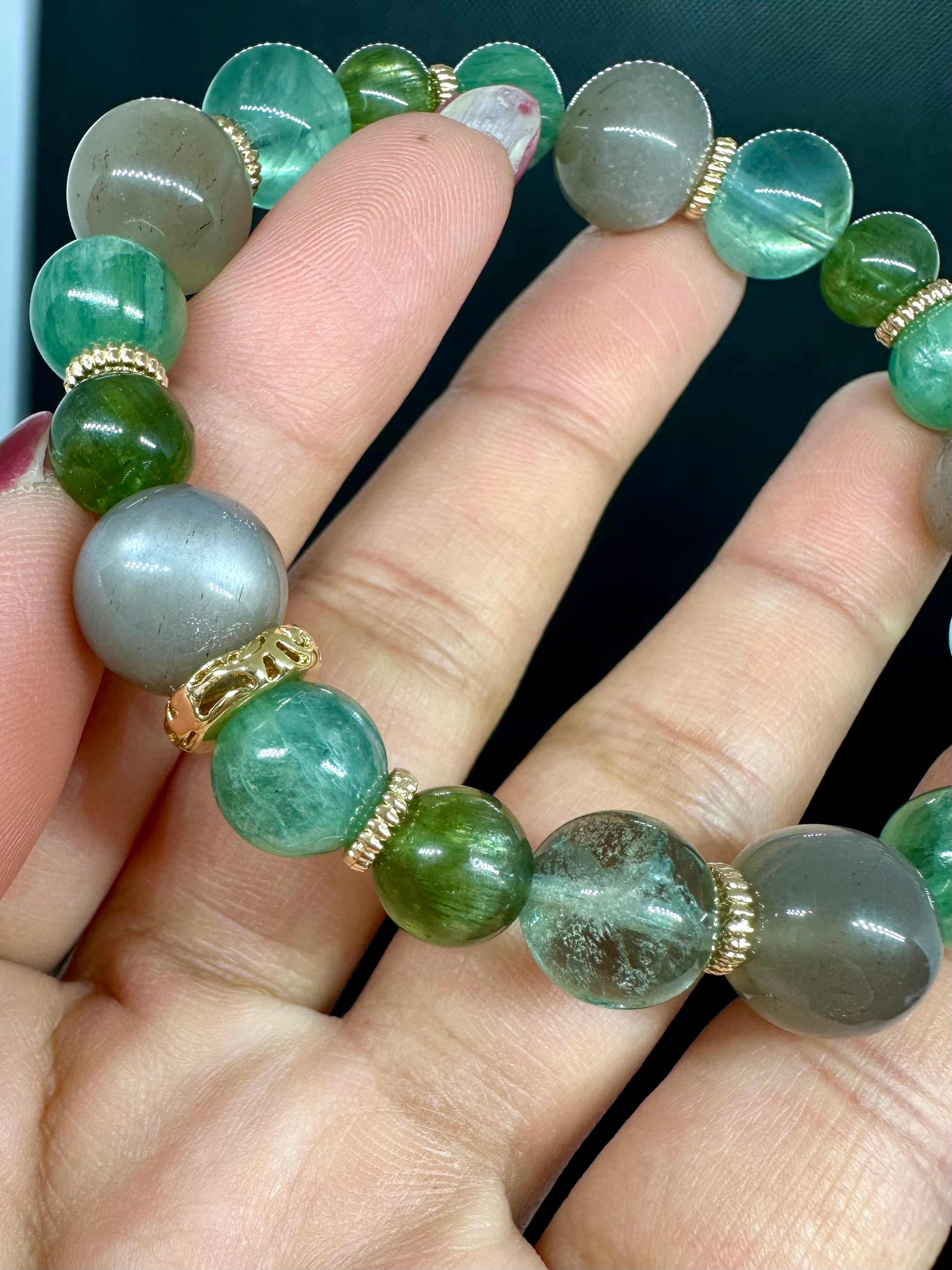 ブラウンムーンストーン×グリーンカイヤナイト×グリーンキャッツアイアパタイト