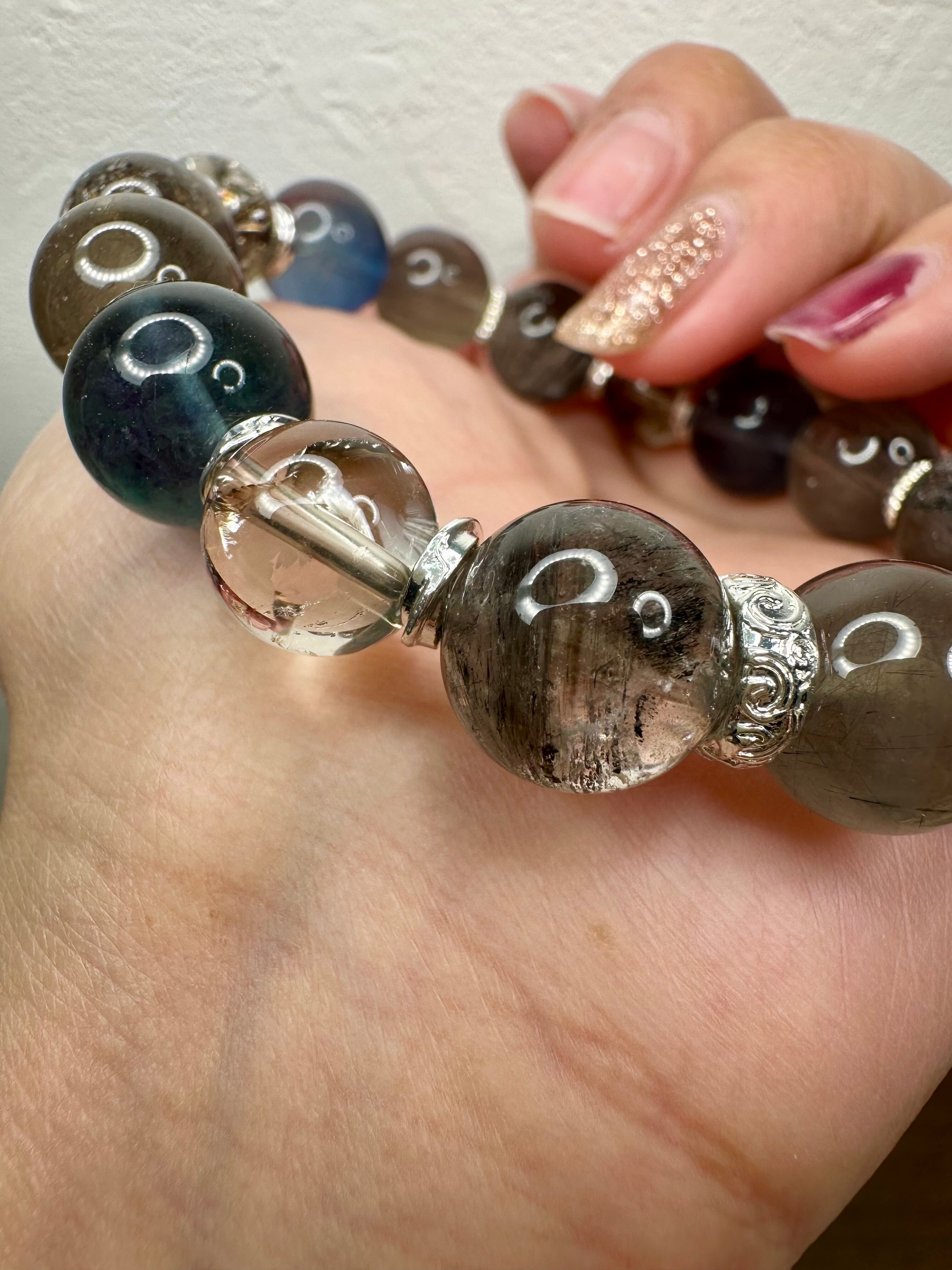 エレスチャルクォーツ×ブルールチルクォーツ×ブルーフローライト×ライトスモーキーアイリスクォーツ