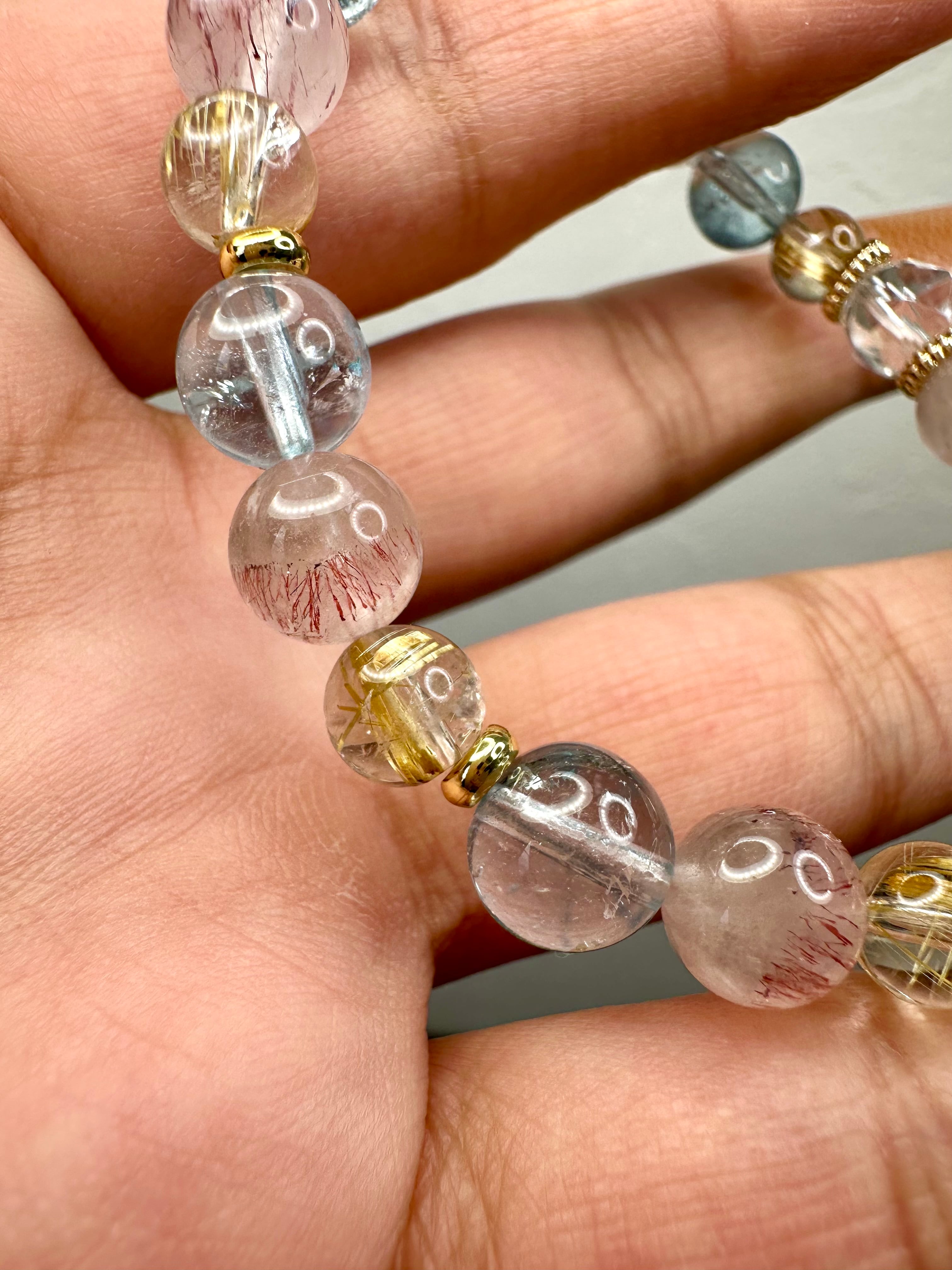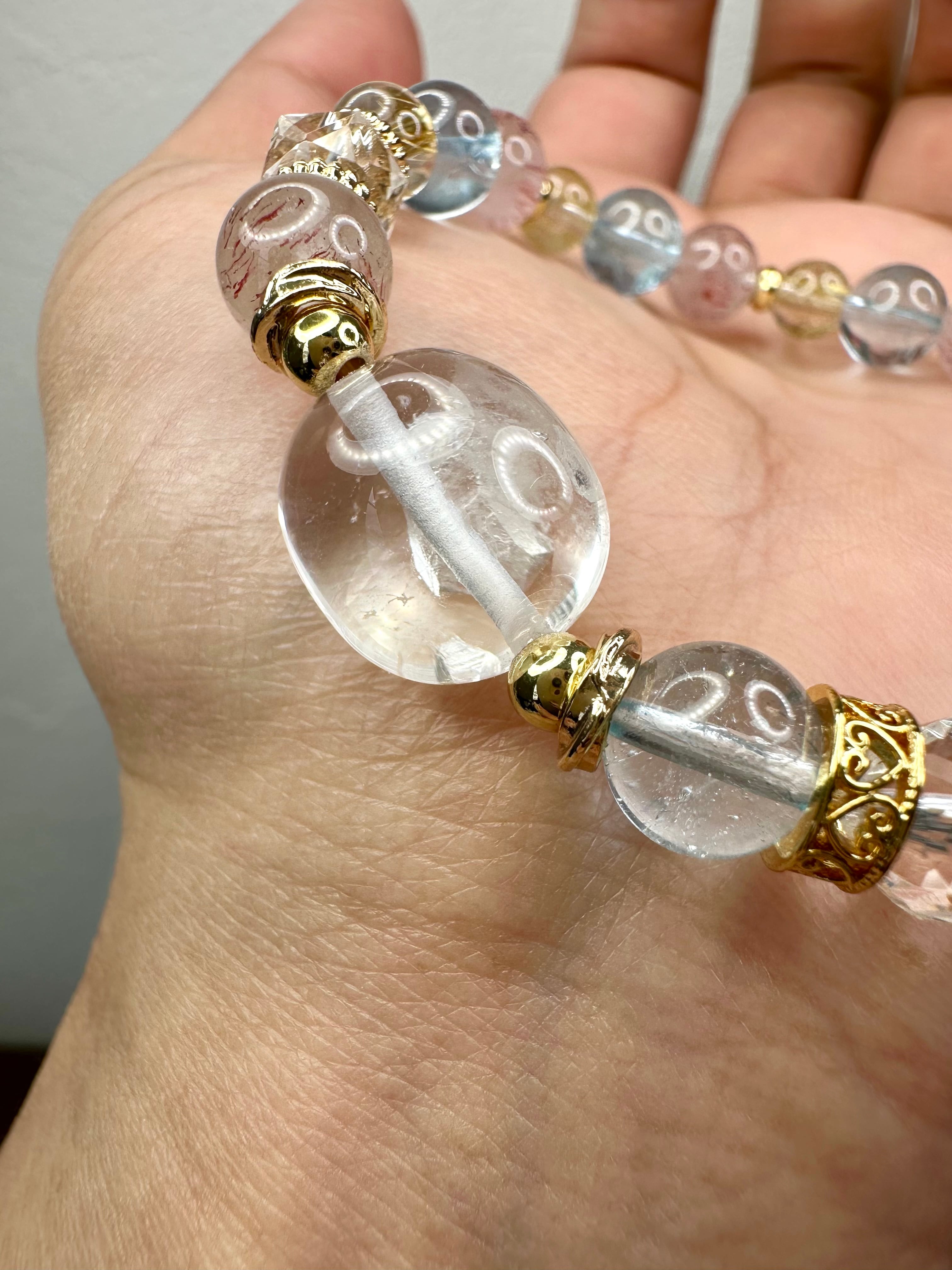 クォーツインクォーツ×ピンクスーパーセブン×ゴールドルチルクォーツ×ブルートパーズ
