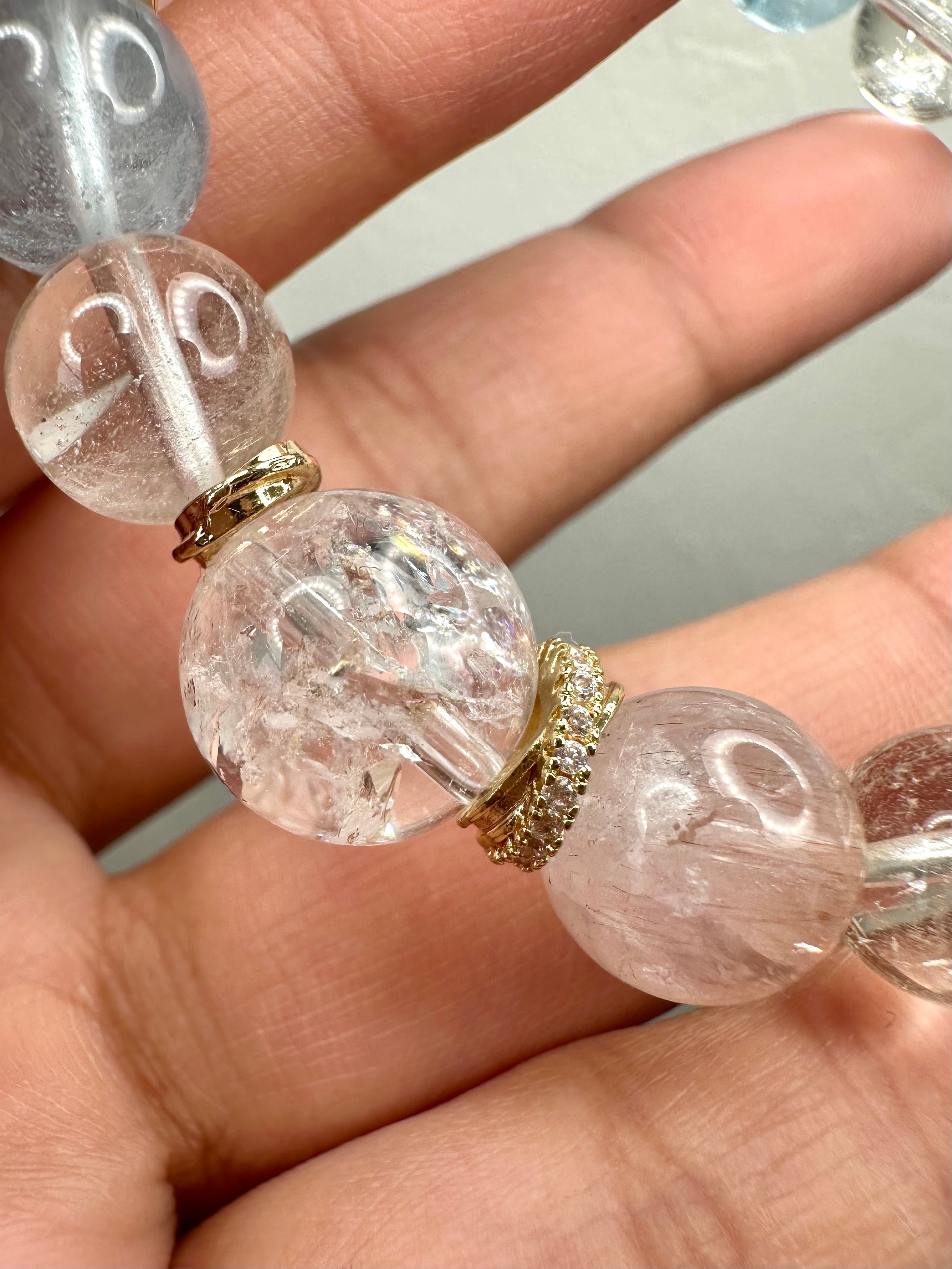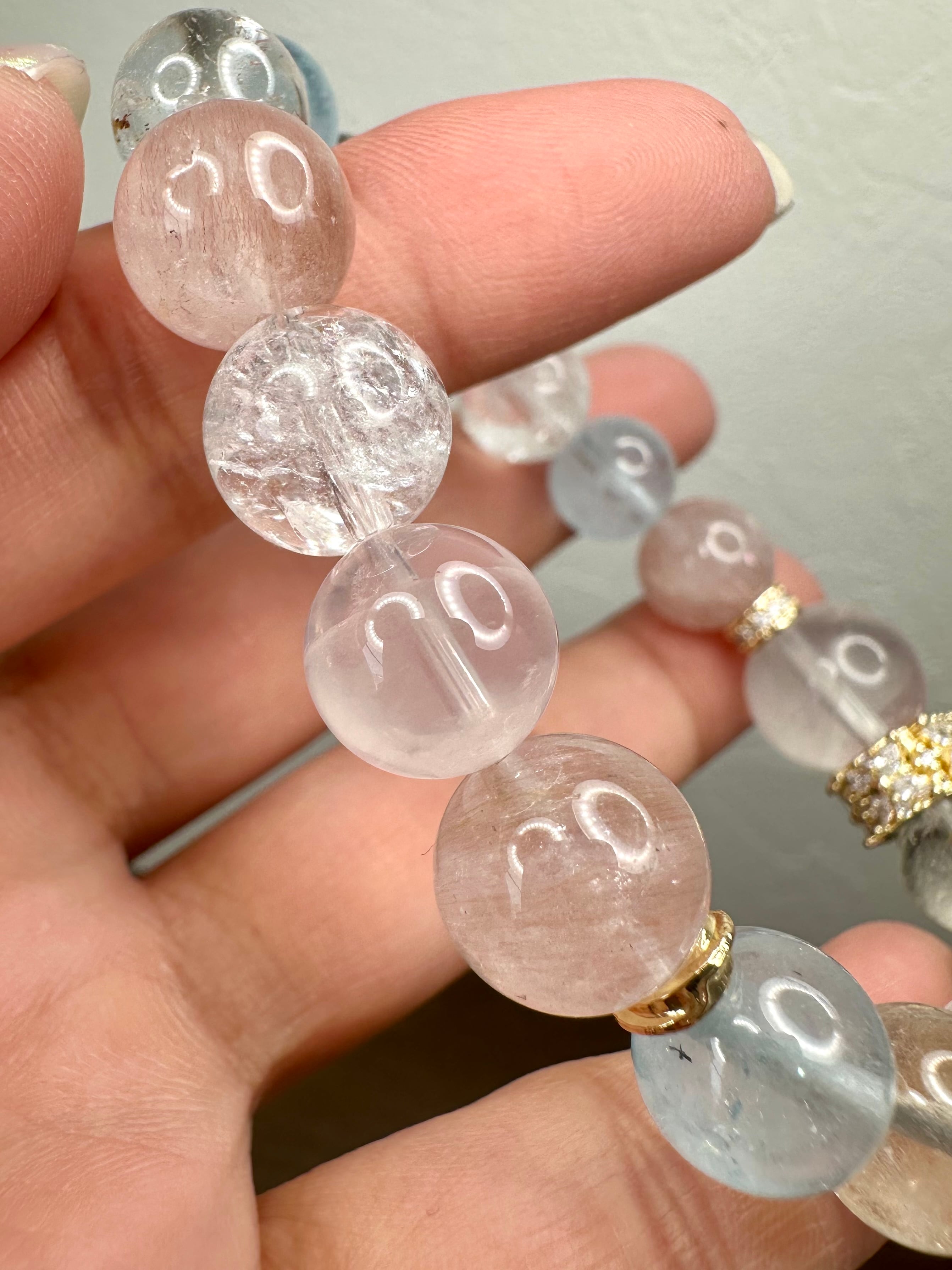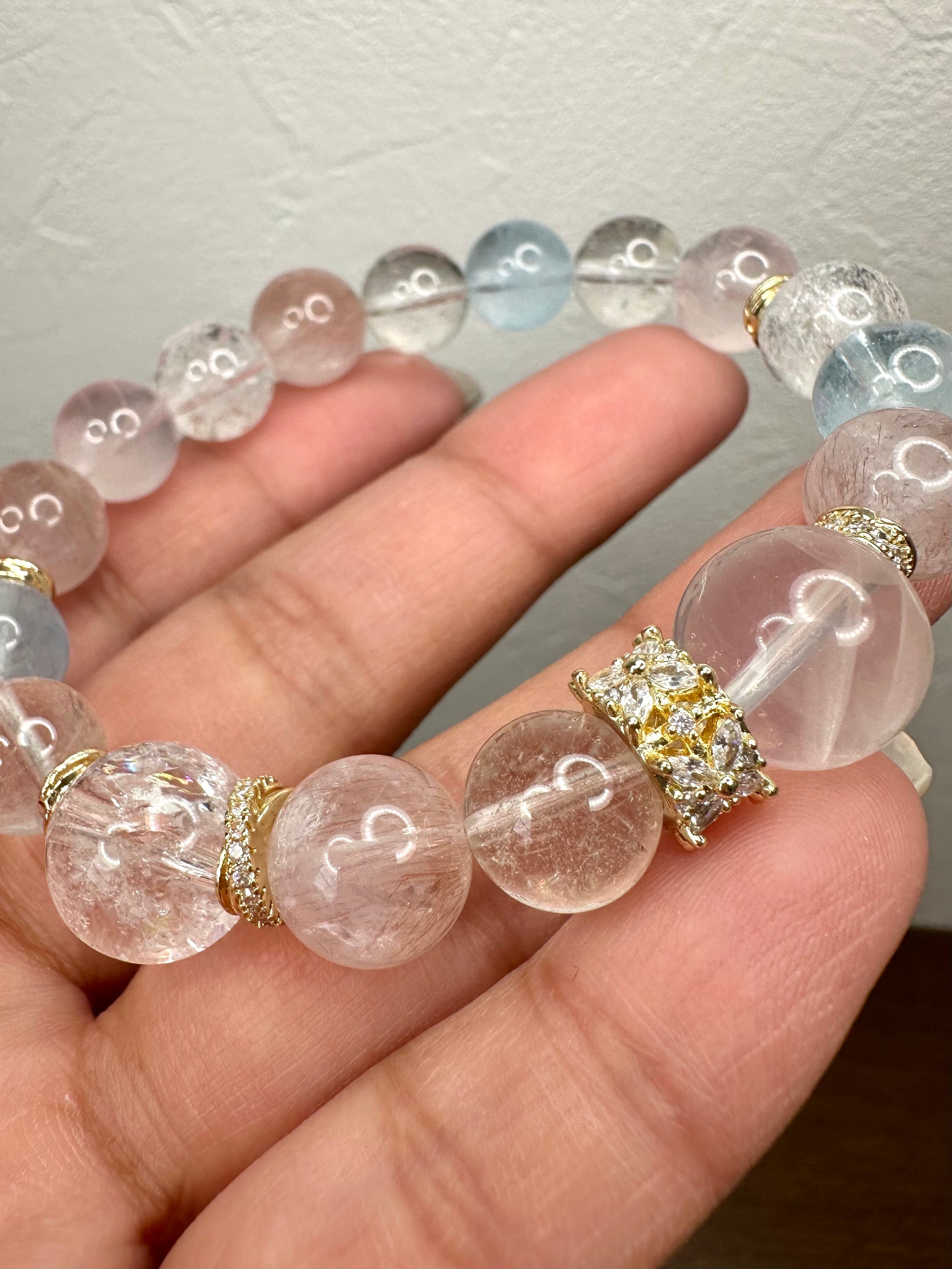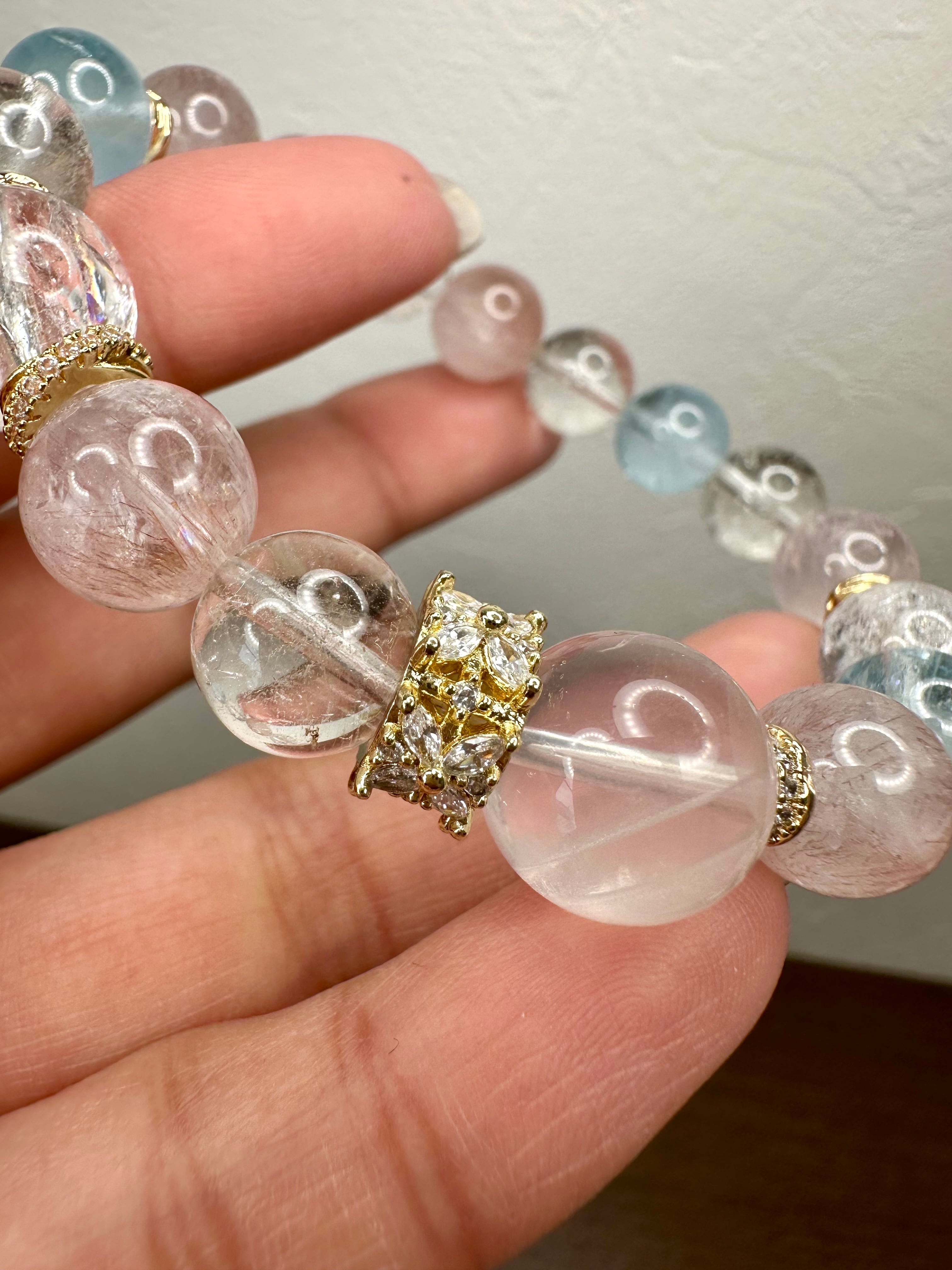 スターローズクォーツ×ピンクエレスチャルアメジスト×ブルートパーズ×マニカランクォーツ×ナチュラルトパーズ