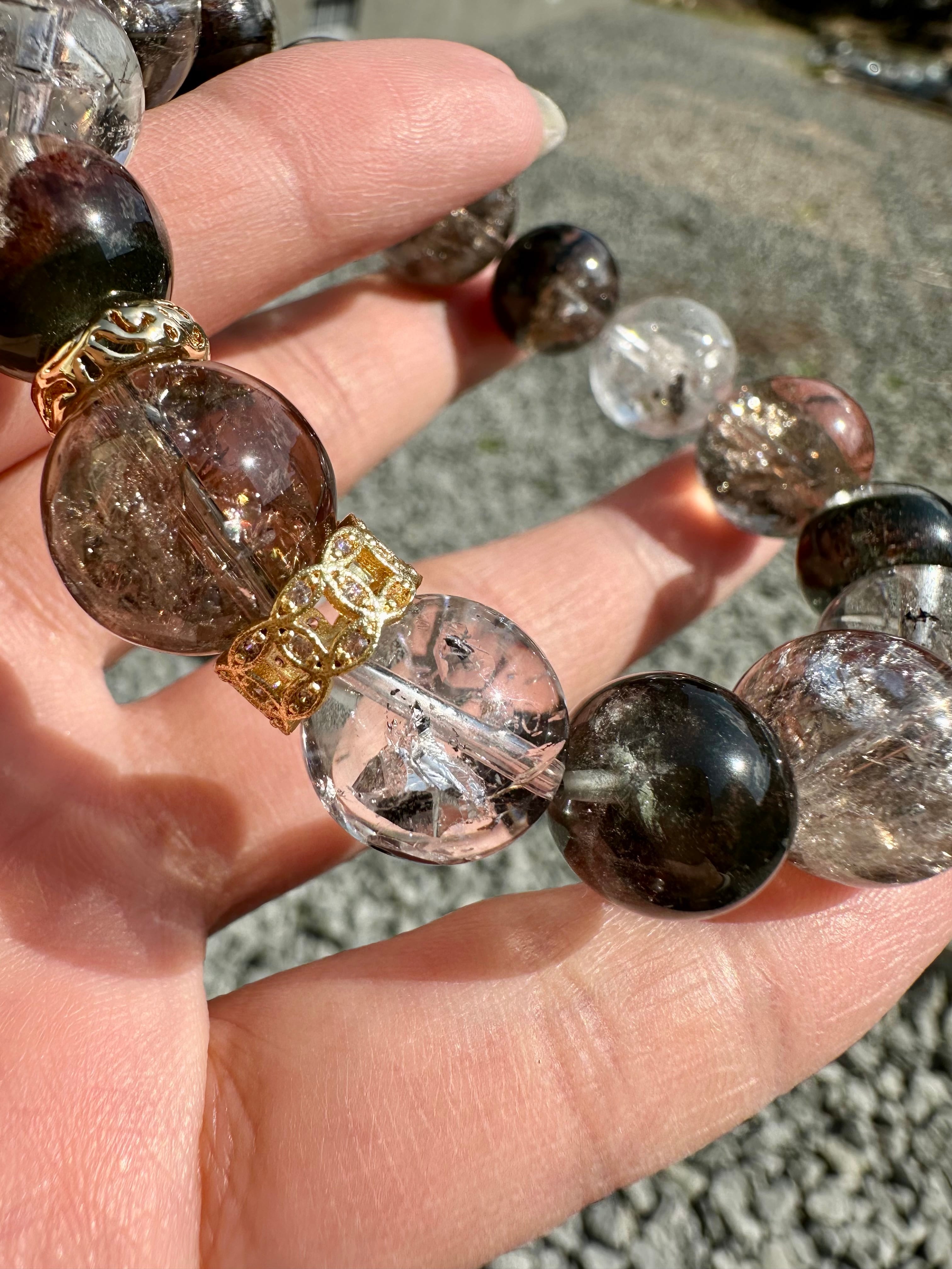 エレスチャルクォーツ×スモーキーアイリスクォーツ×ガーデンクォーツ
