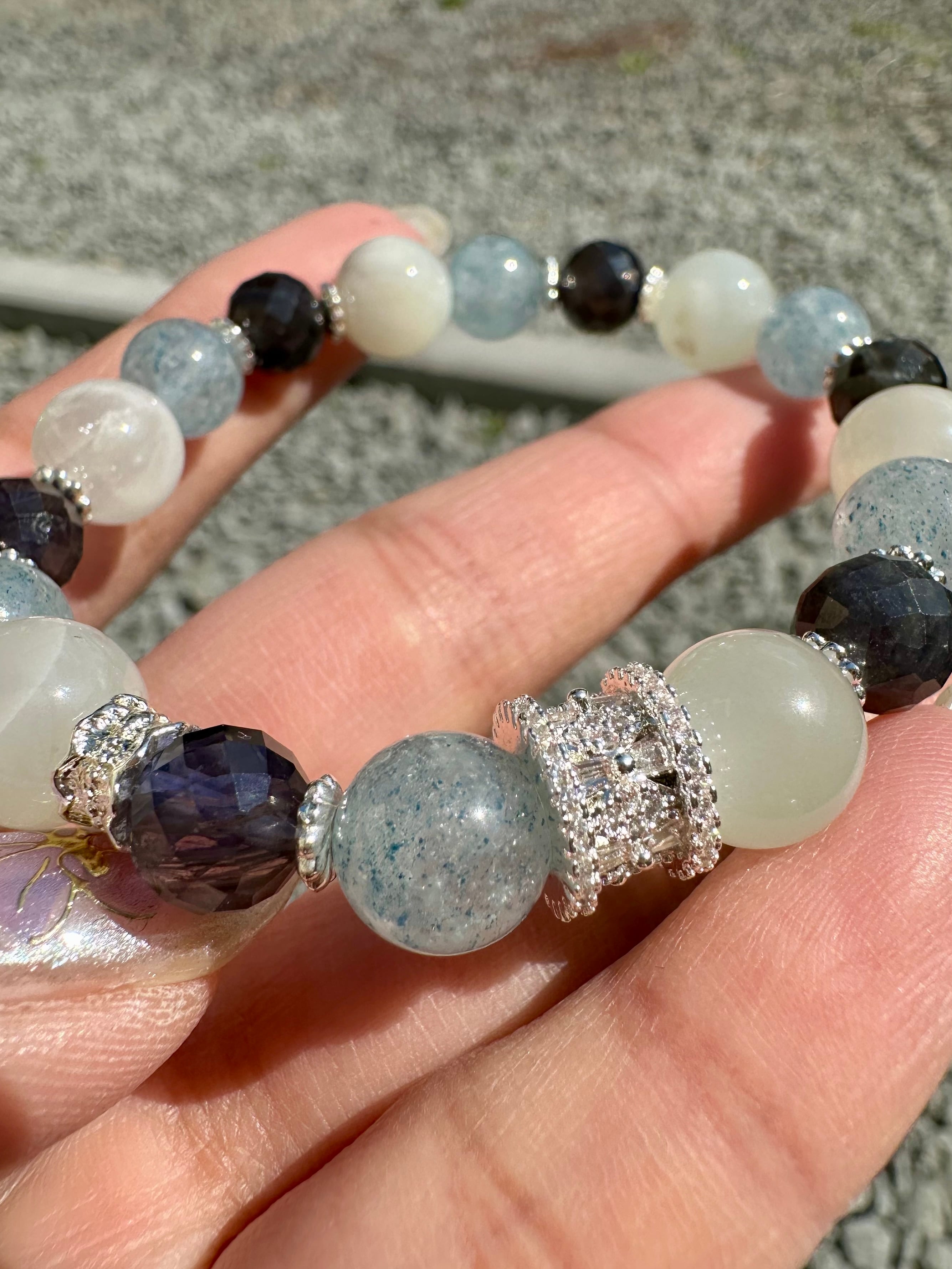 ホワイトムーンストーン×ブルーストロベリークォーツ×アイオライト