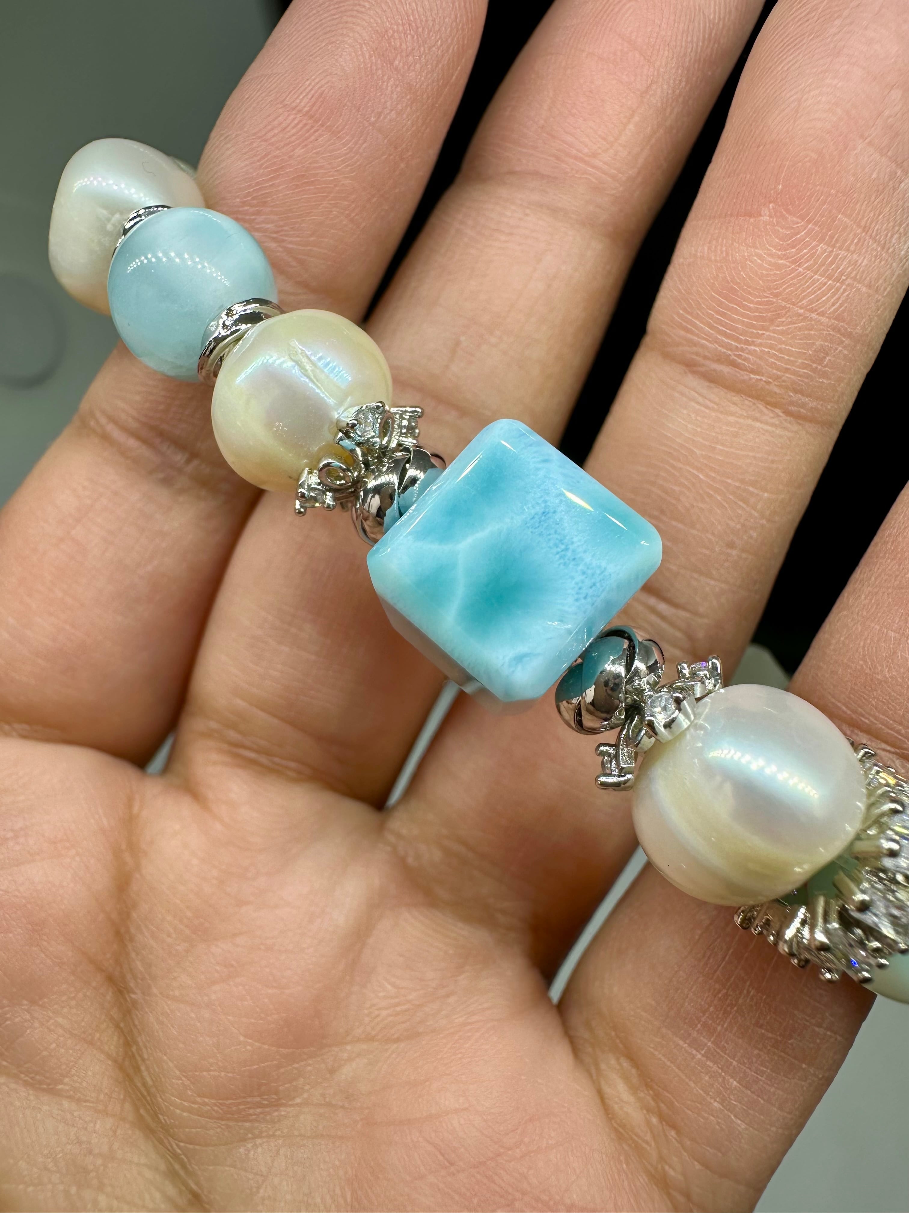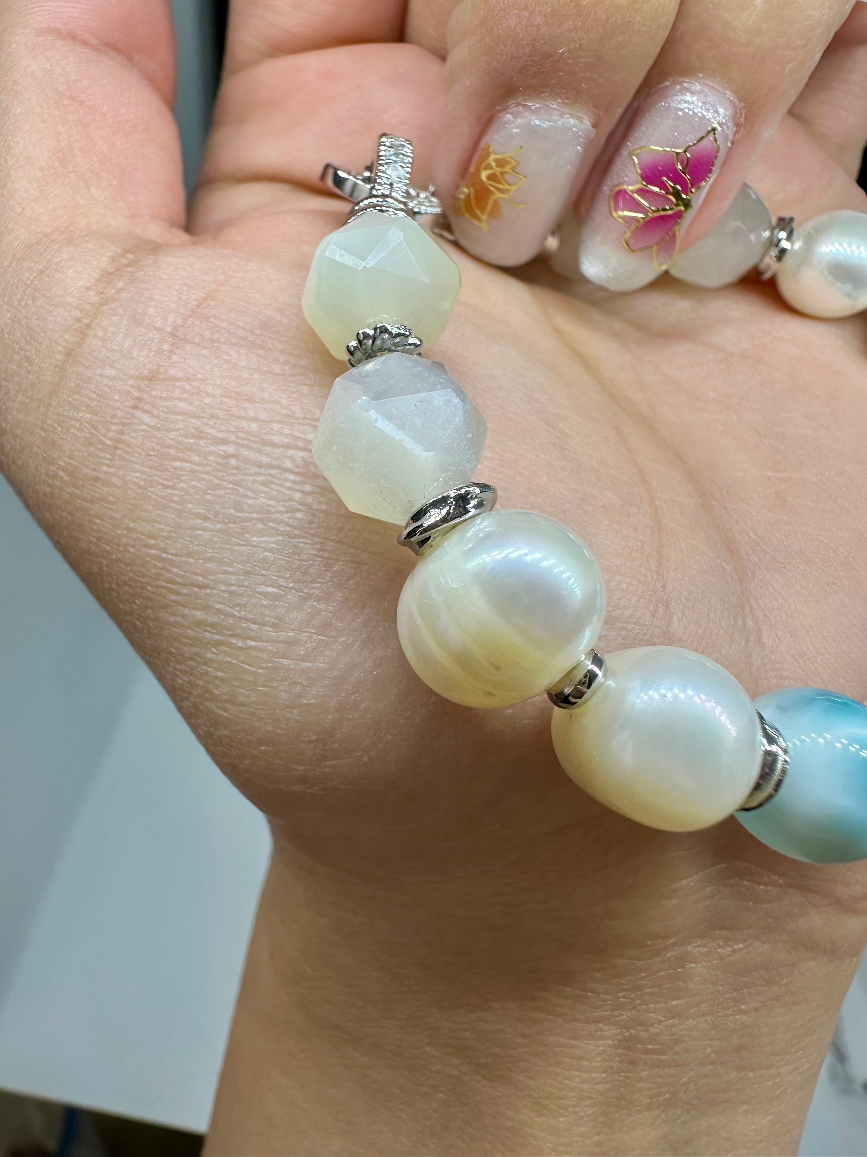 ラリマー×淡水パール×ホワイトムーンストーン
