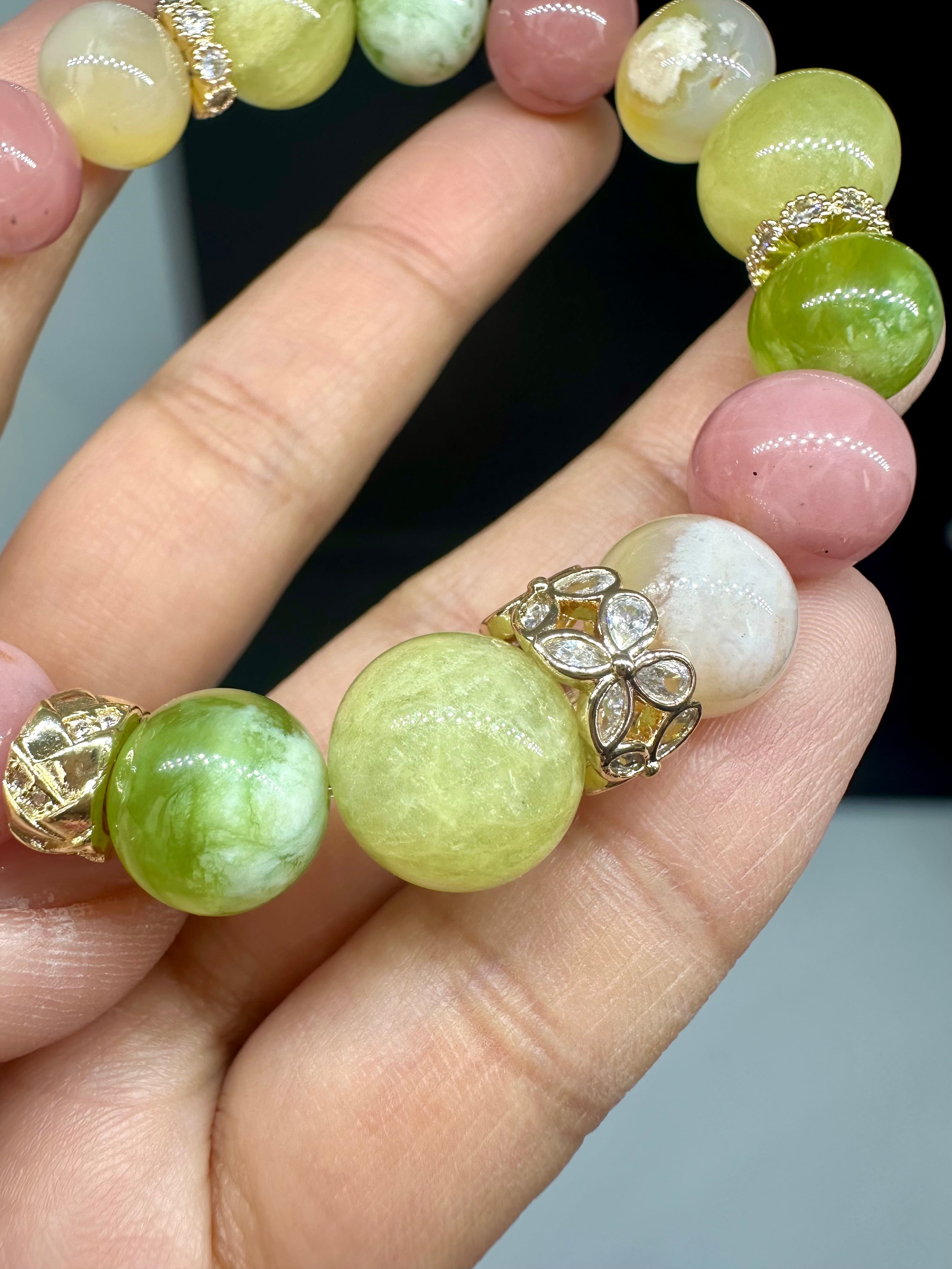 ヘリオドール×マスカットサーペンティン×グァバクォーツ×桜瑪瑙
