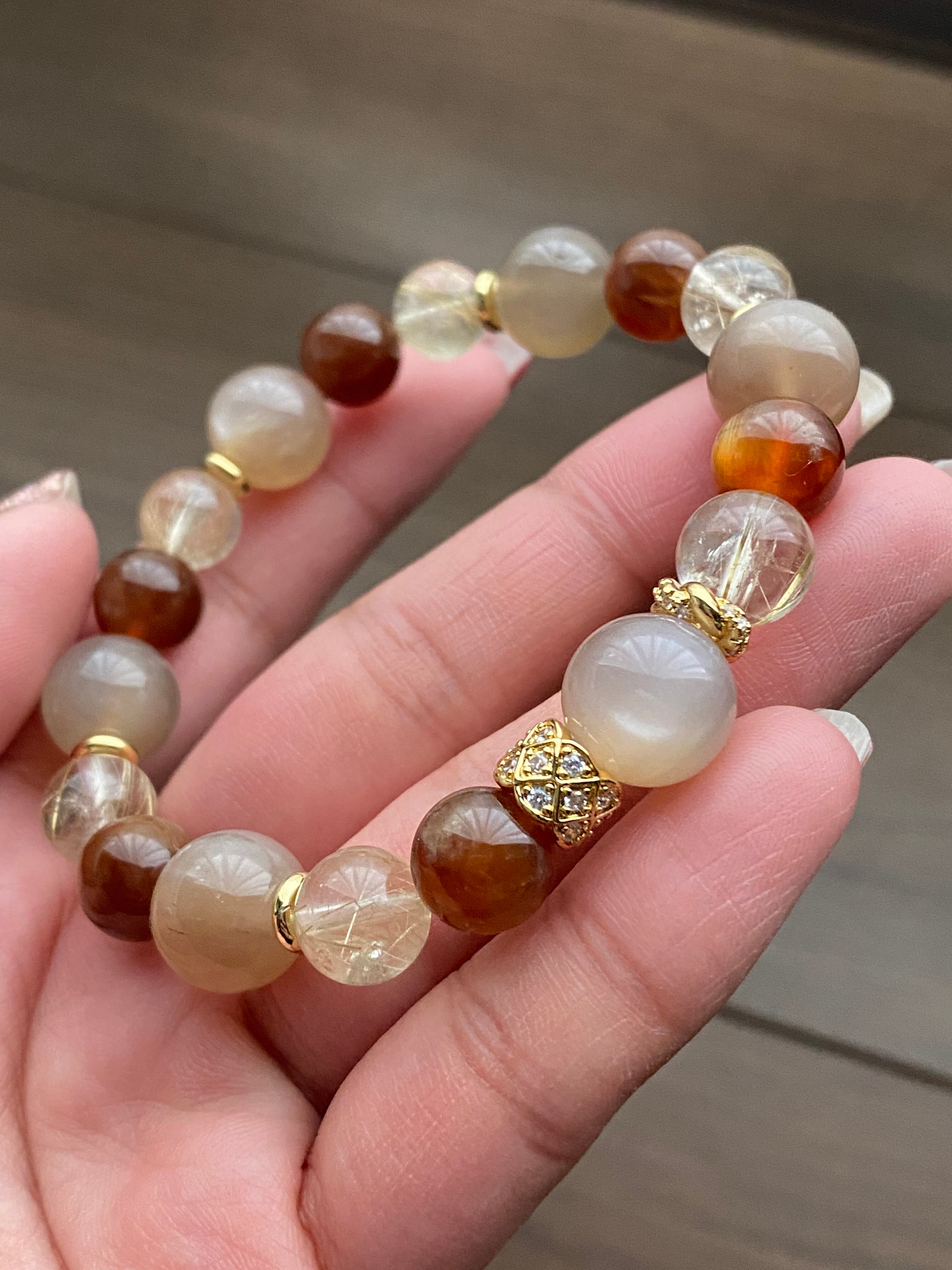 ブラウンムーンストーン×プレジオクレースムーンストーン×ゴールドルチルクォーツ