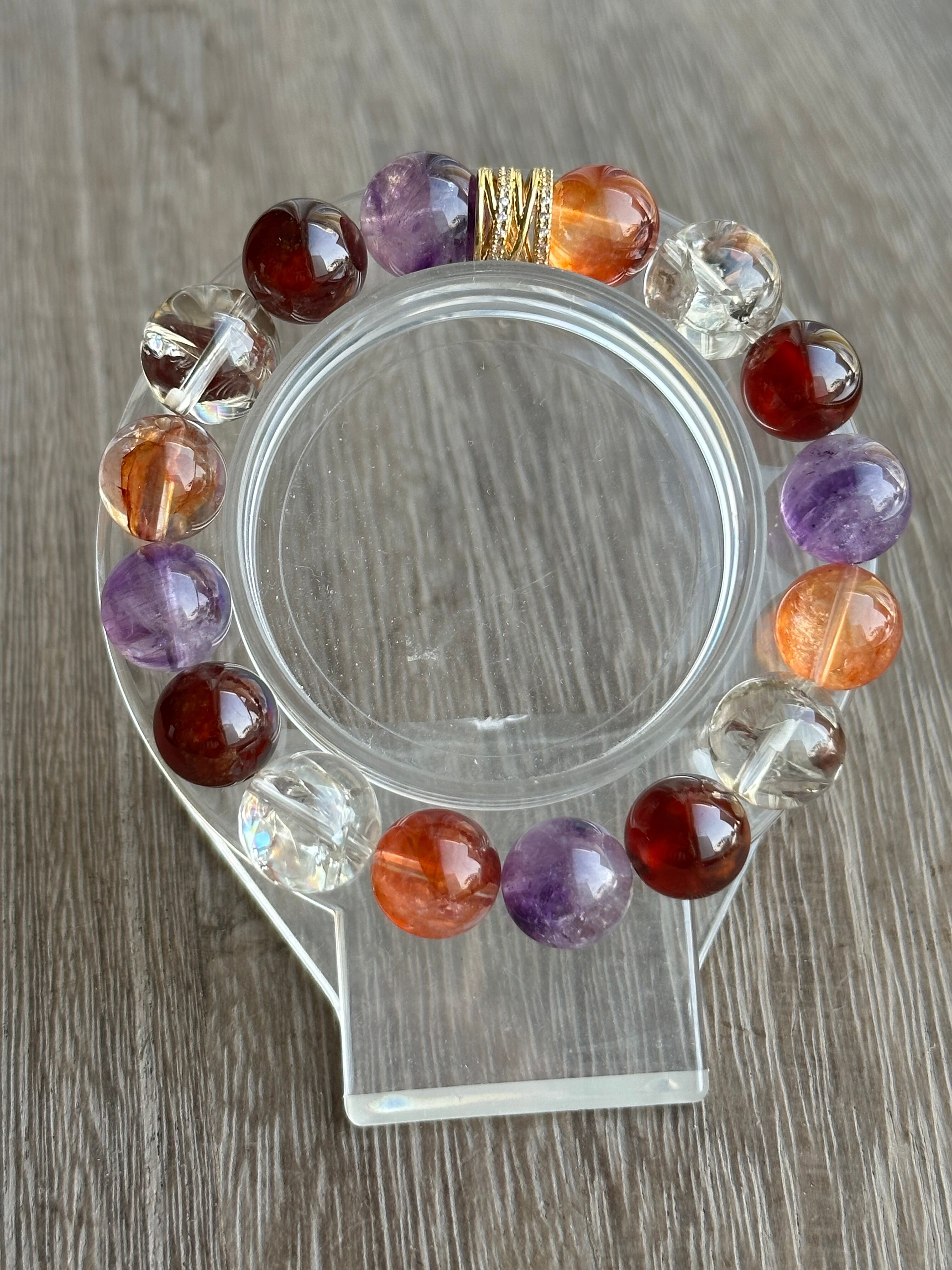オーロラクォーツ×ライトスモーキーアイリスクォーツ×ヘソナイト×エレスチャルアメジスト