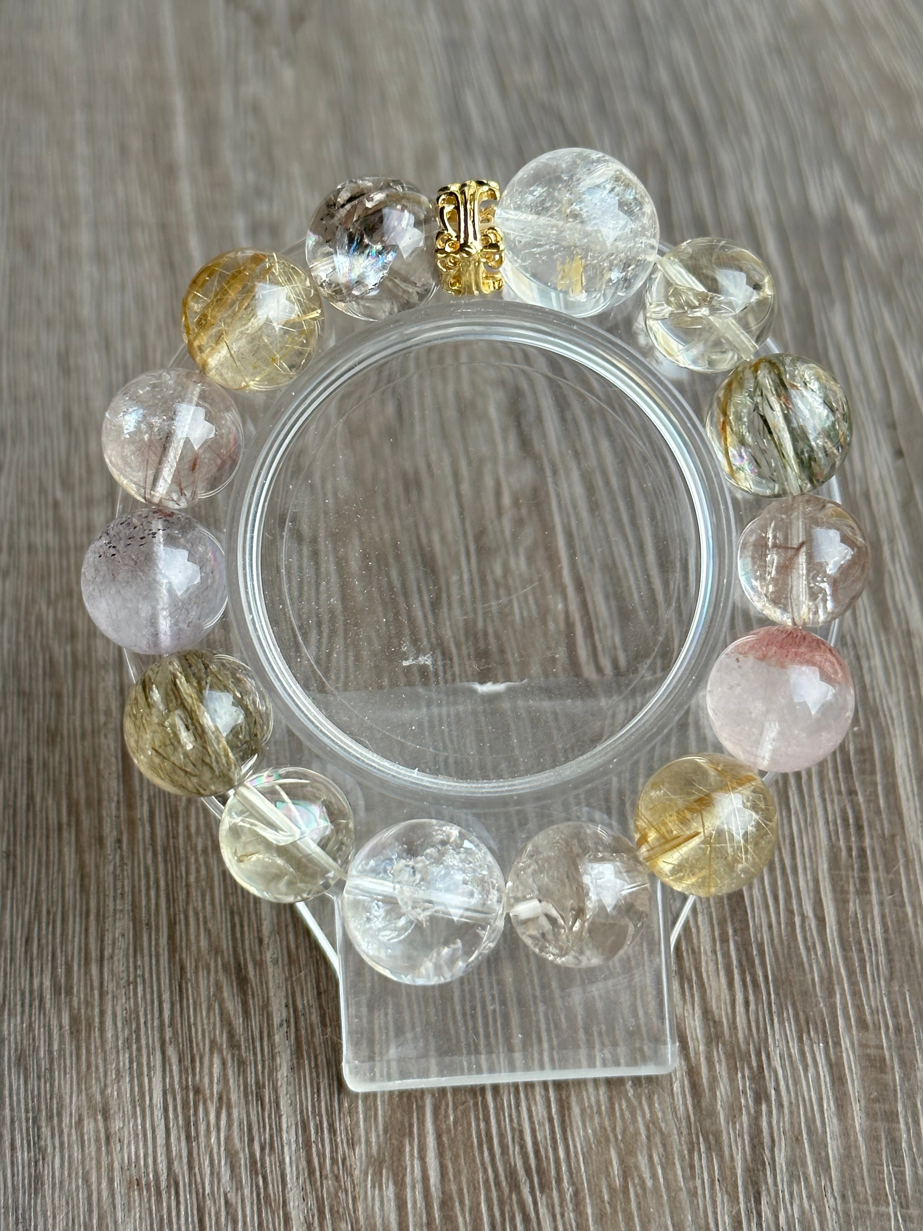 マニカランクォーツ×レモンアイリスクォーツ×グリーンルチルクォーツ×ピンクパープルルチルクォーツ×スーパーセブン×ゴールドルチルクォーツ×ライトスモーキーアイリスクォーツ