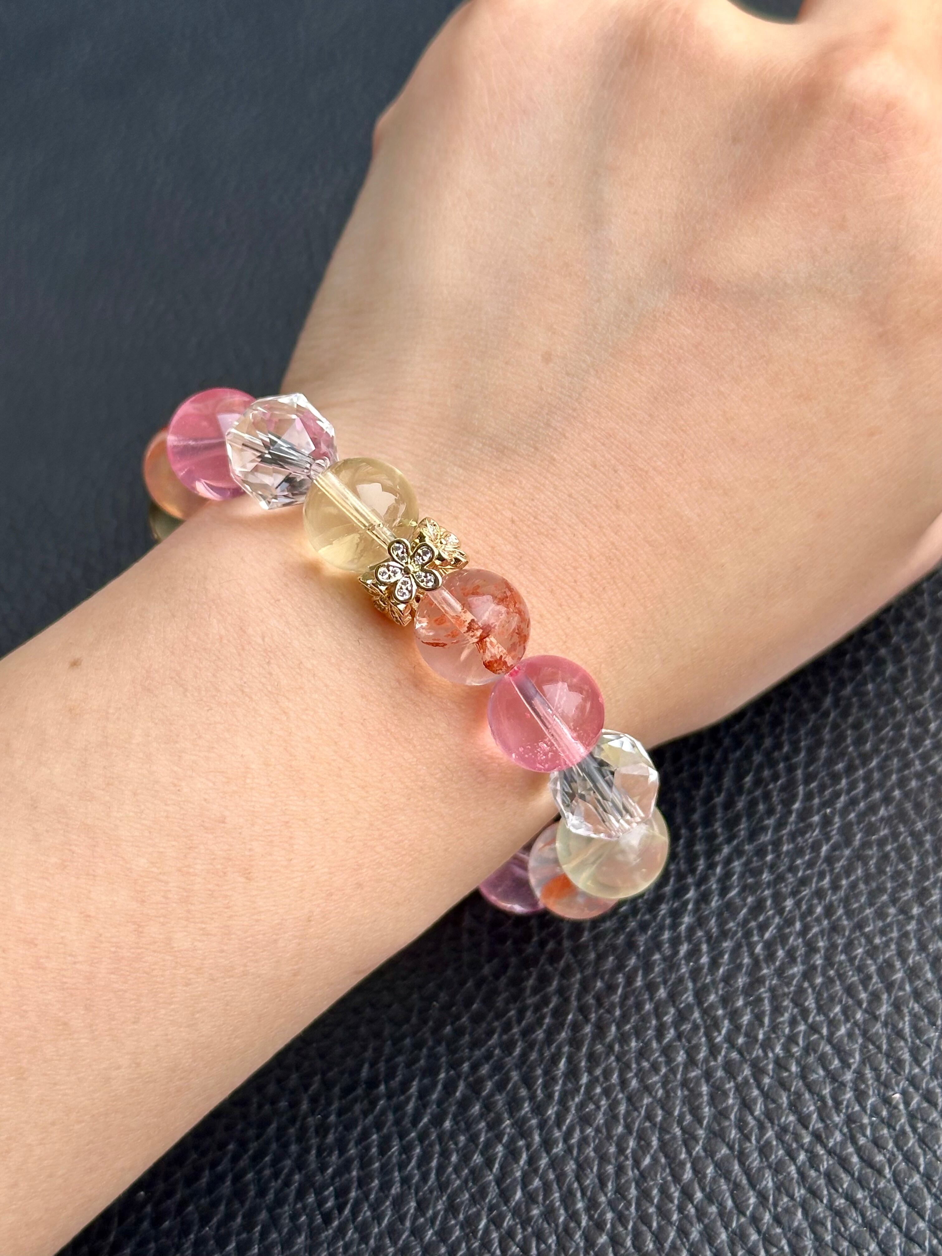 オーロラクォーツ×ピンクトパーズ×レモンマニカランクォーツ×水晶