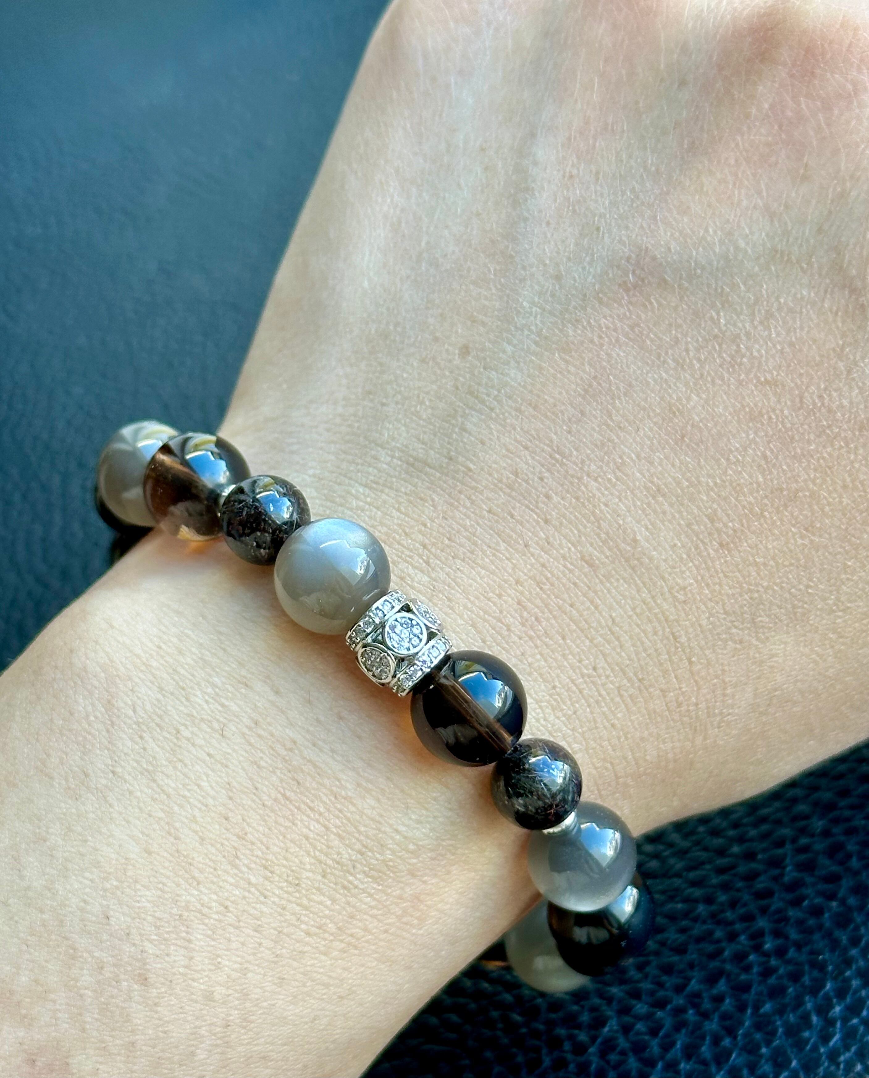 ブラックゴールドルチルクォーツ×ブラックムーンストーン×スモーキークォーツ