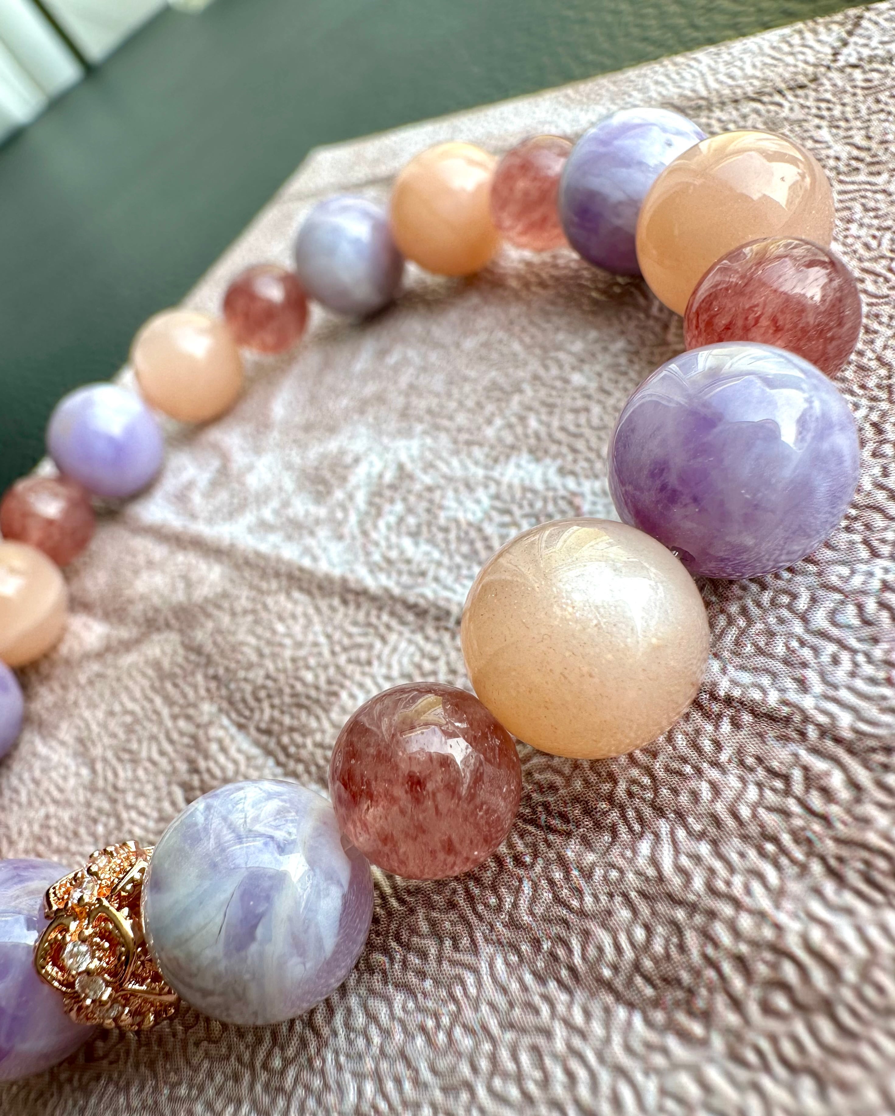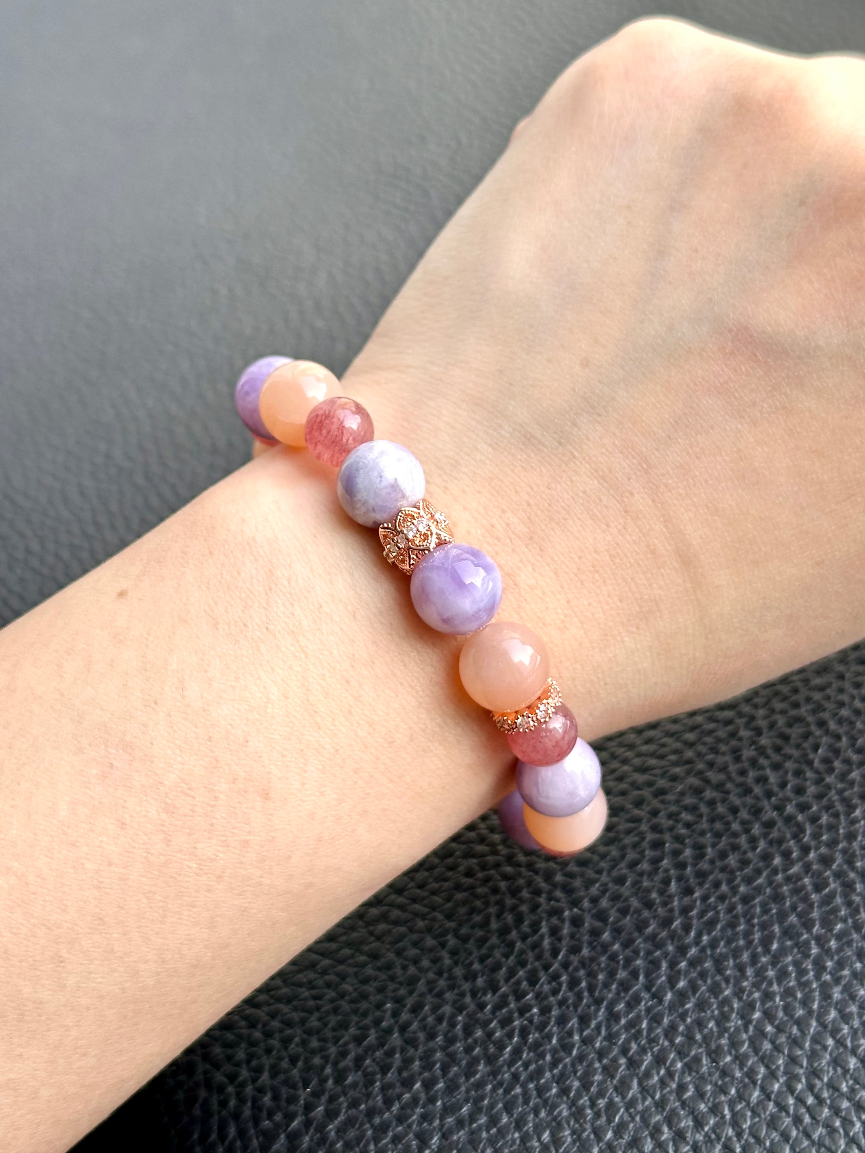 オレンジムーンストーン×アメシスティンクォーツ×ストロベリークォーツ