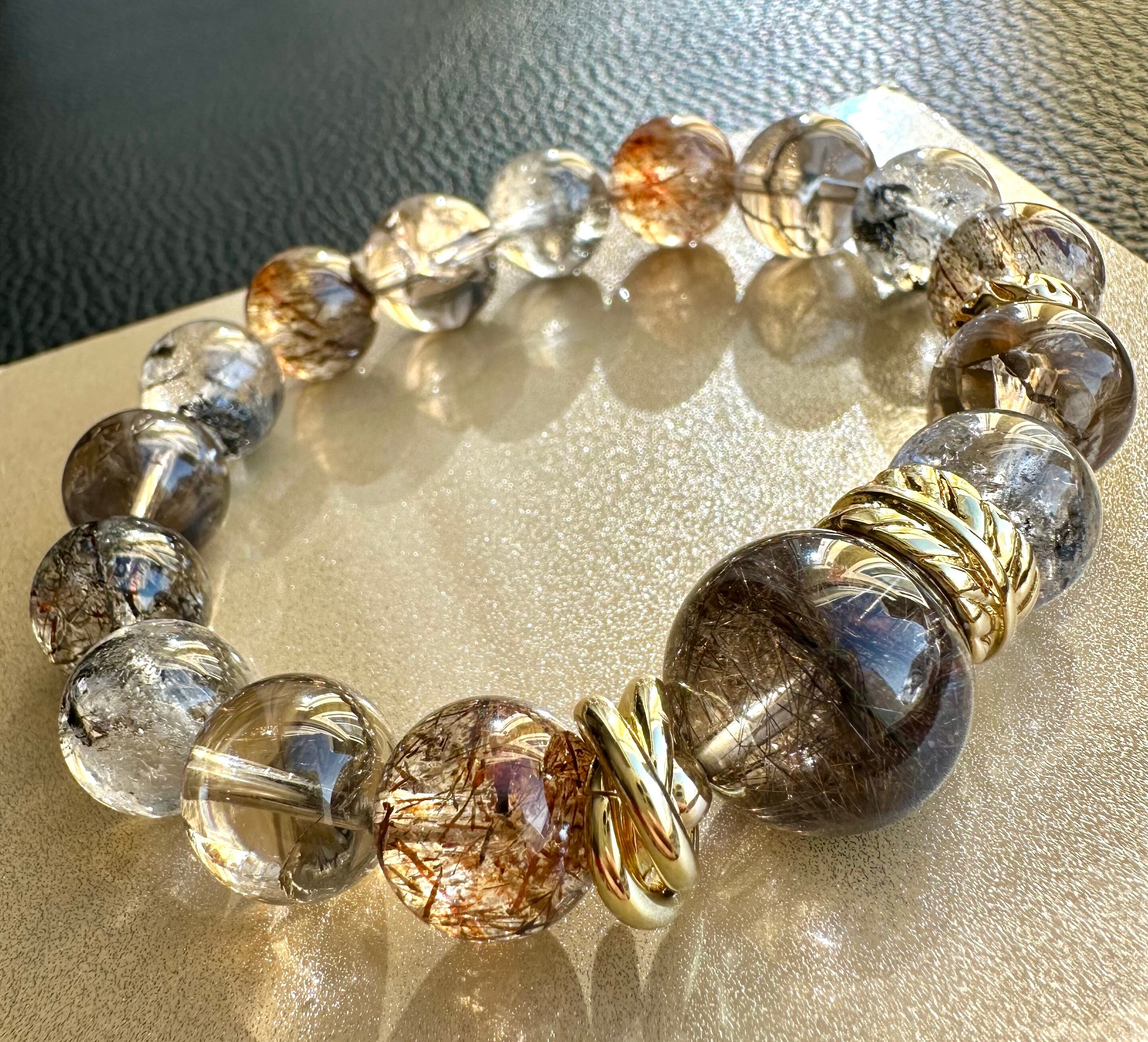 ブラウンルチルクォーツ×黒金スーパーセブン×スモーキーアイリスクォーツ×エレスチャルクォーツ