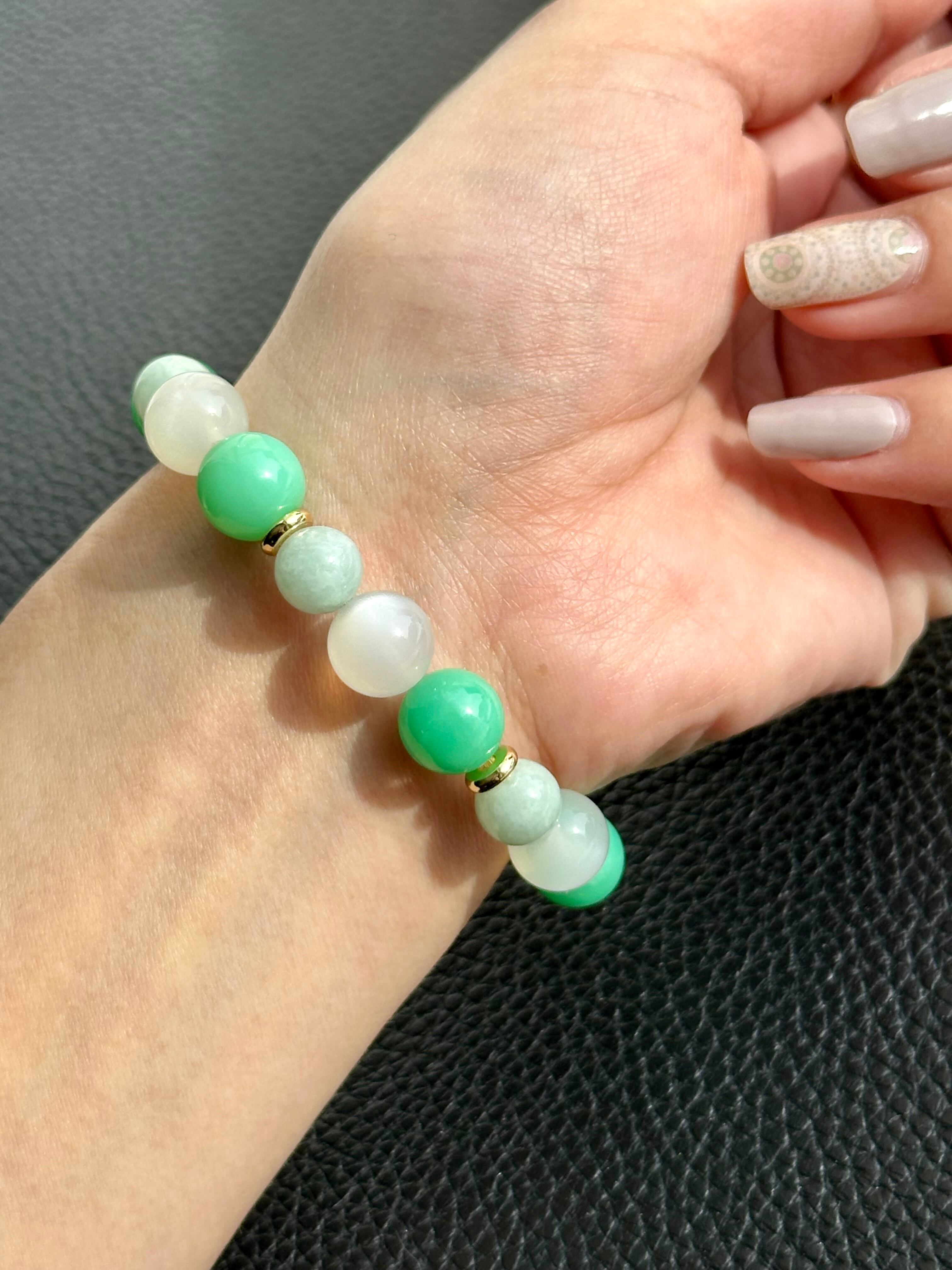 クリソプレーズ×ホワイトムーンストーン×翡翠