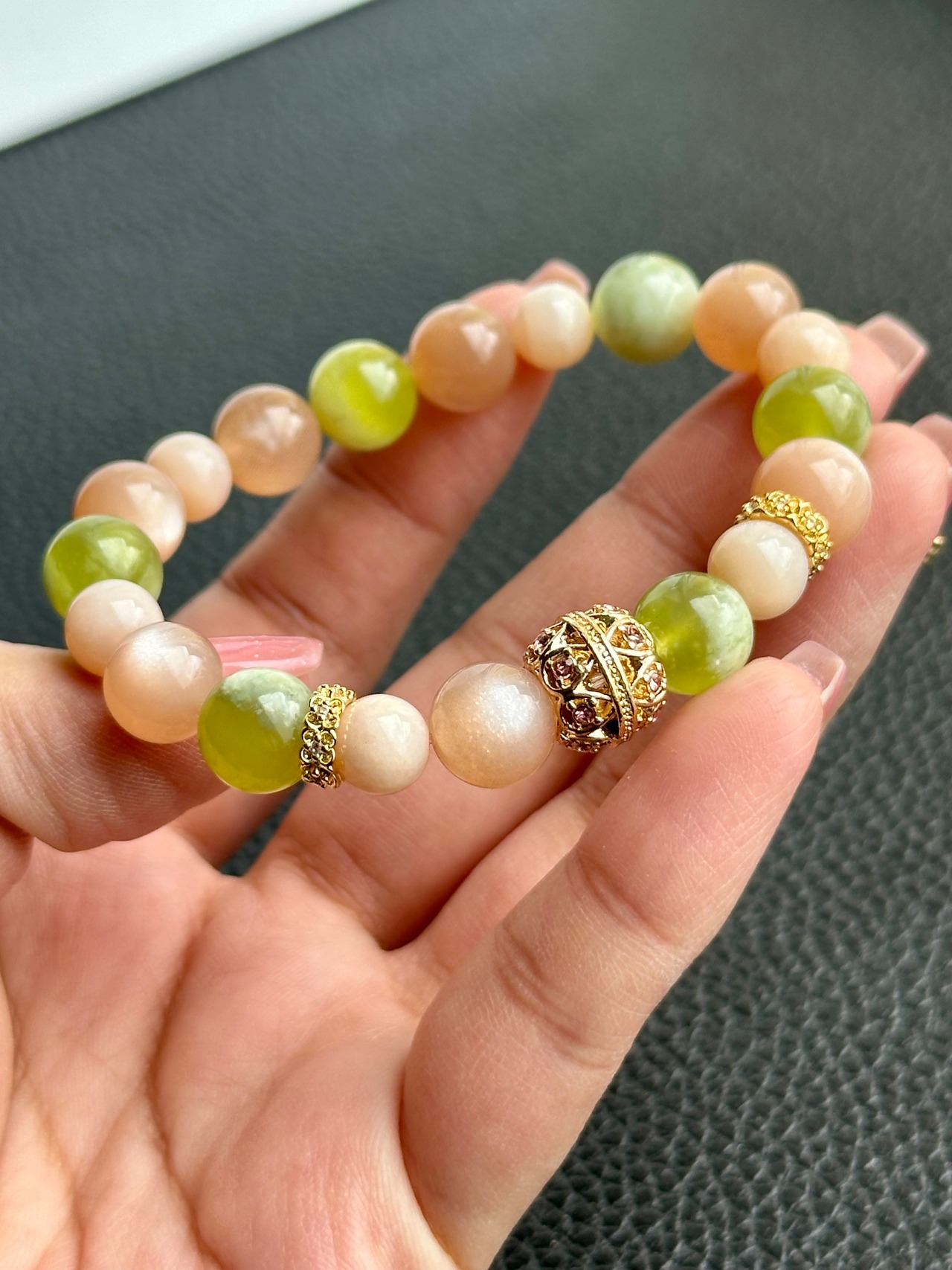 オレンジムーンストーン×マスカットサーペンティン×ピンクオパール