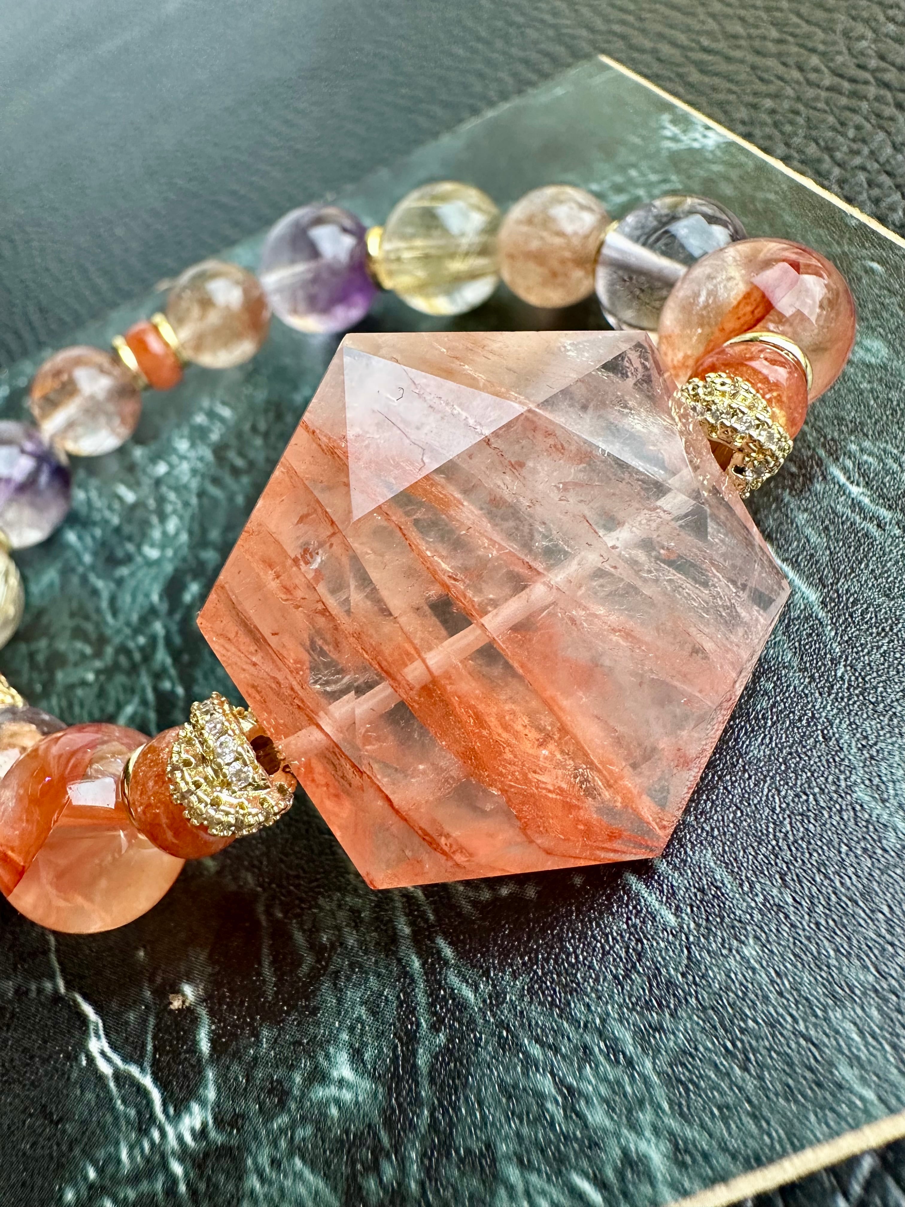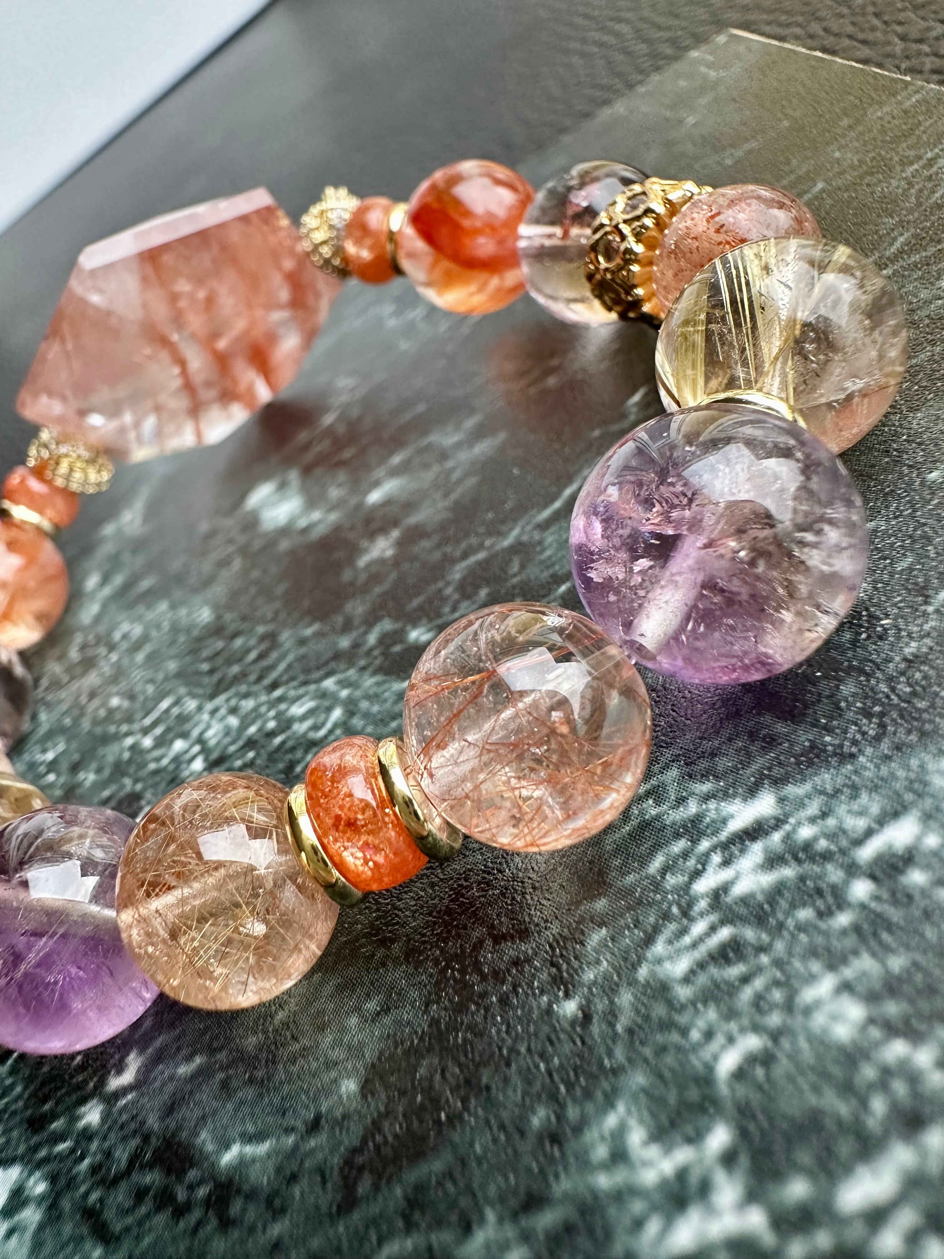 オーロラクォーツ×サンストーン×アメジスト×ゴールドルチルクォーツ×エレスチャルアメジスト×シルバールチルクォーツ