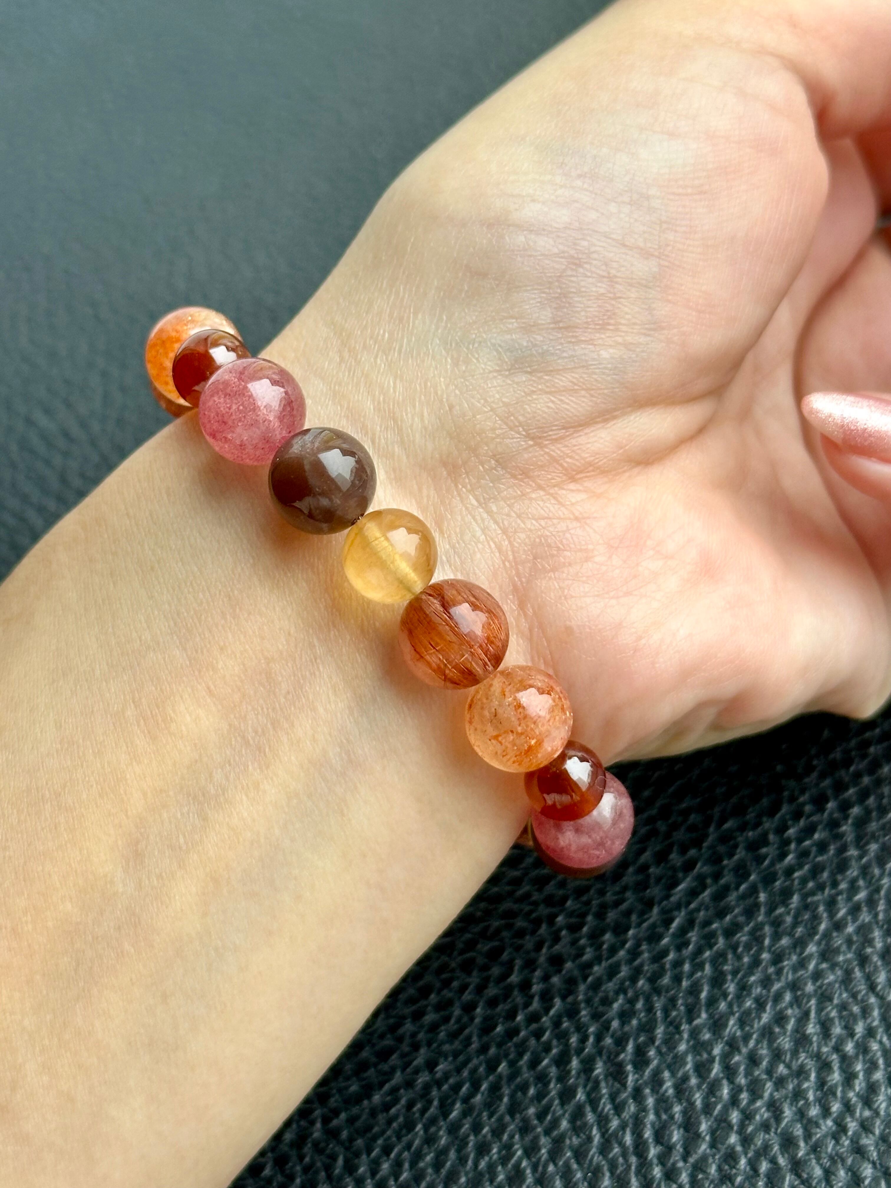 ストロベリークォーツ×ヘソナイト×サンストーン×レッドルチルクォーツ×プレジオクレースムーンストーン×アルーシャサンストーン