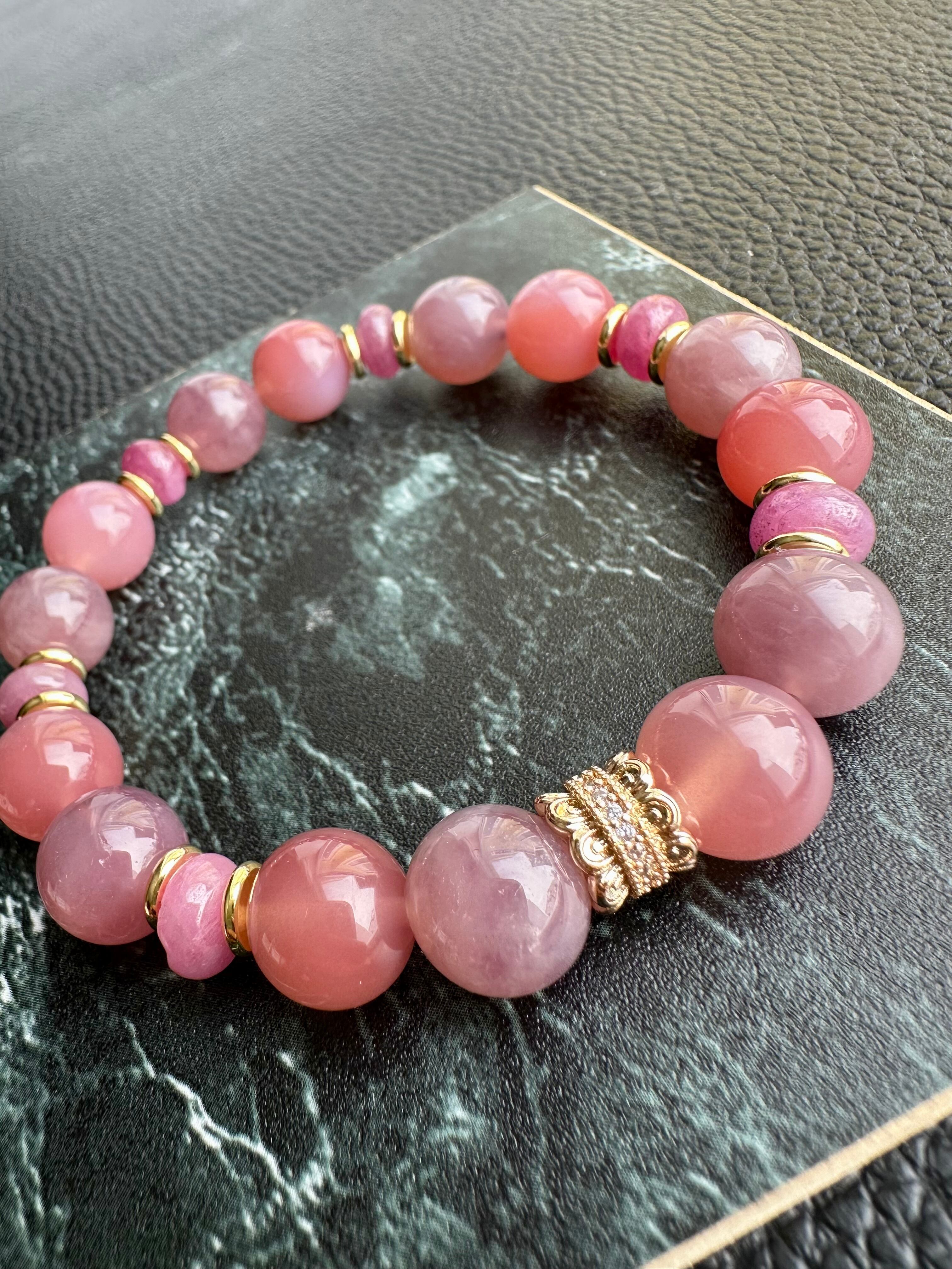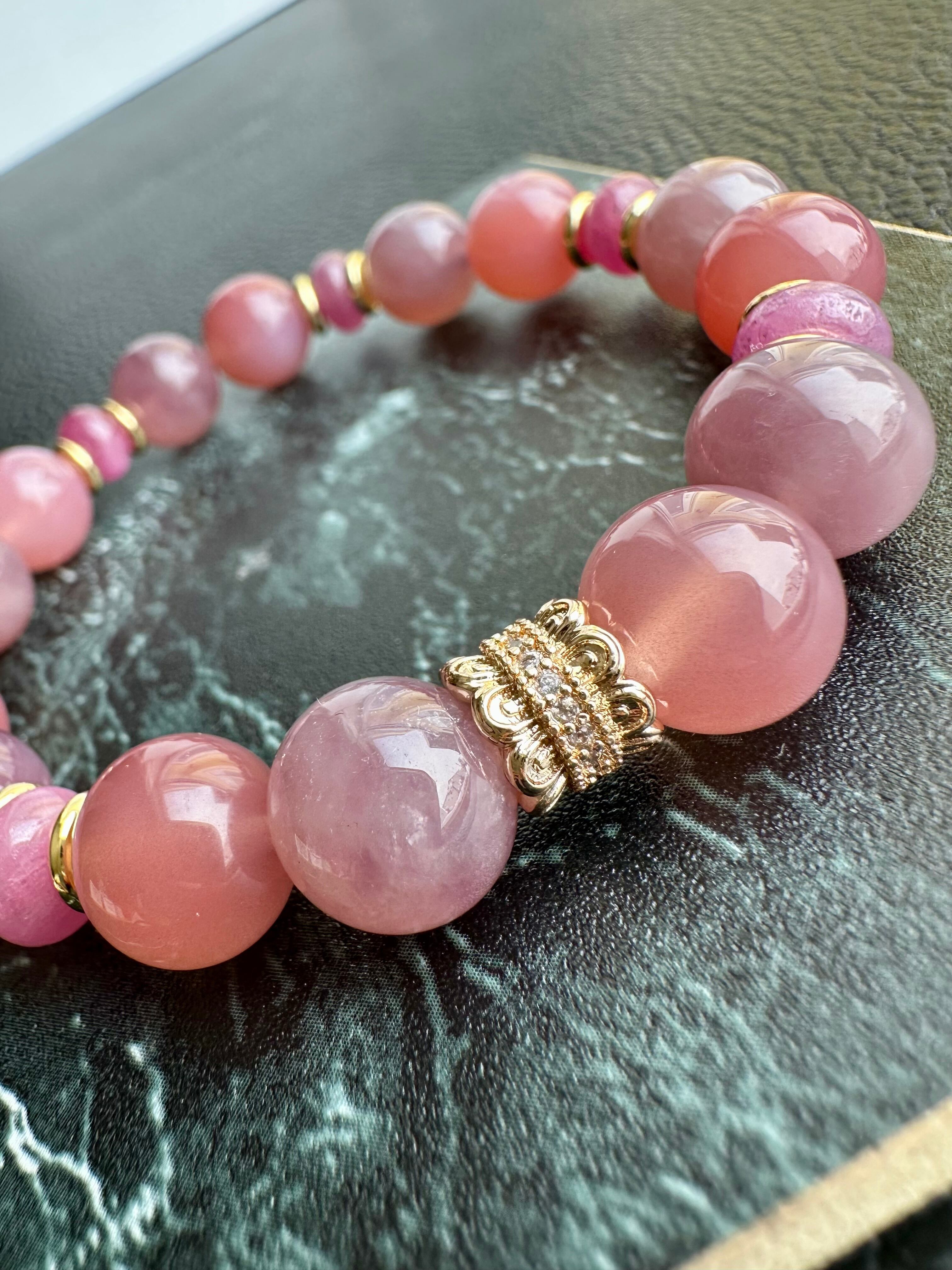 ディープローズクォーツ×塩源瑪瑙×ルビー