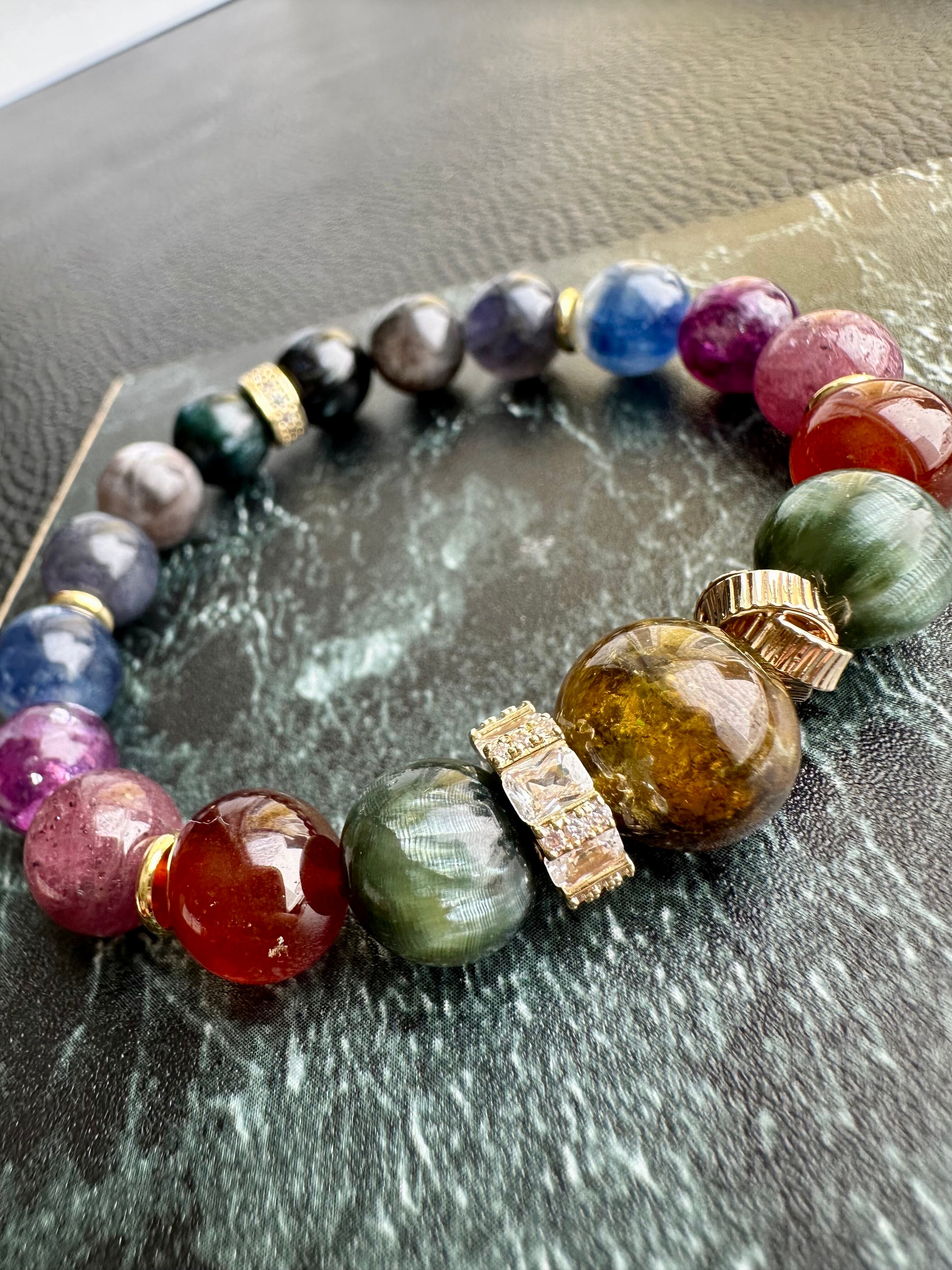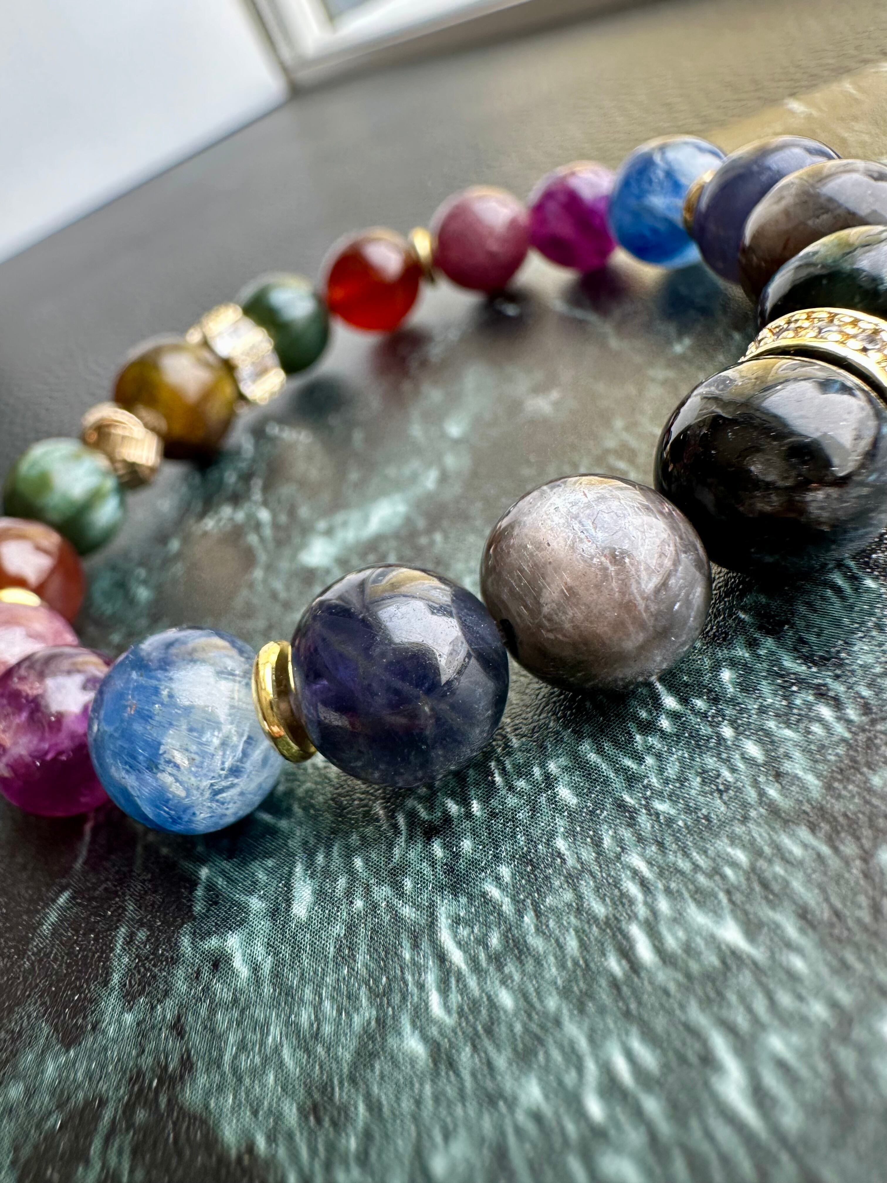 グリーンガーネット×セラフィナイト×ヘソナイト×ルビー×マトリクスレピドライト×カイヤナイトインクォーツ×アイオライト×アイオライトサンストーン×ヌーマイトインガーネット