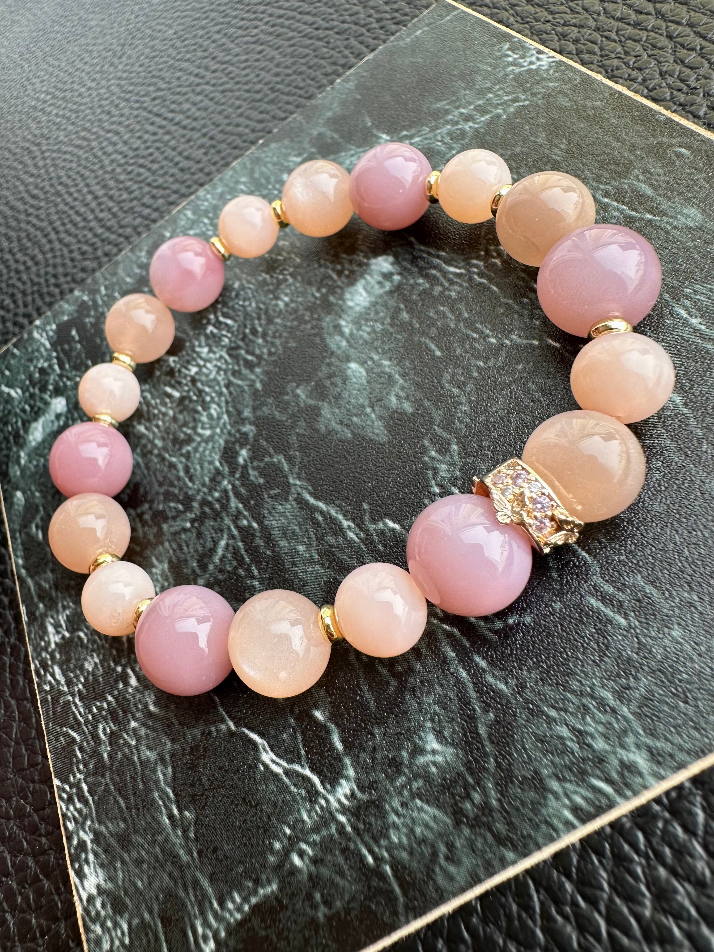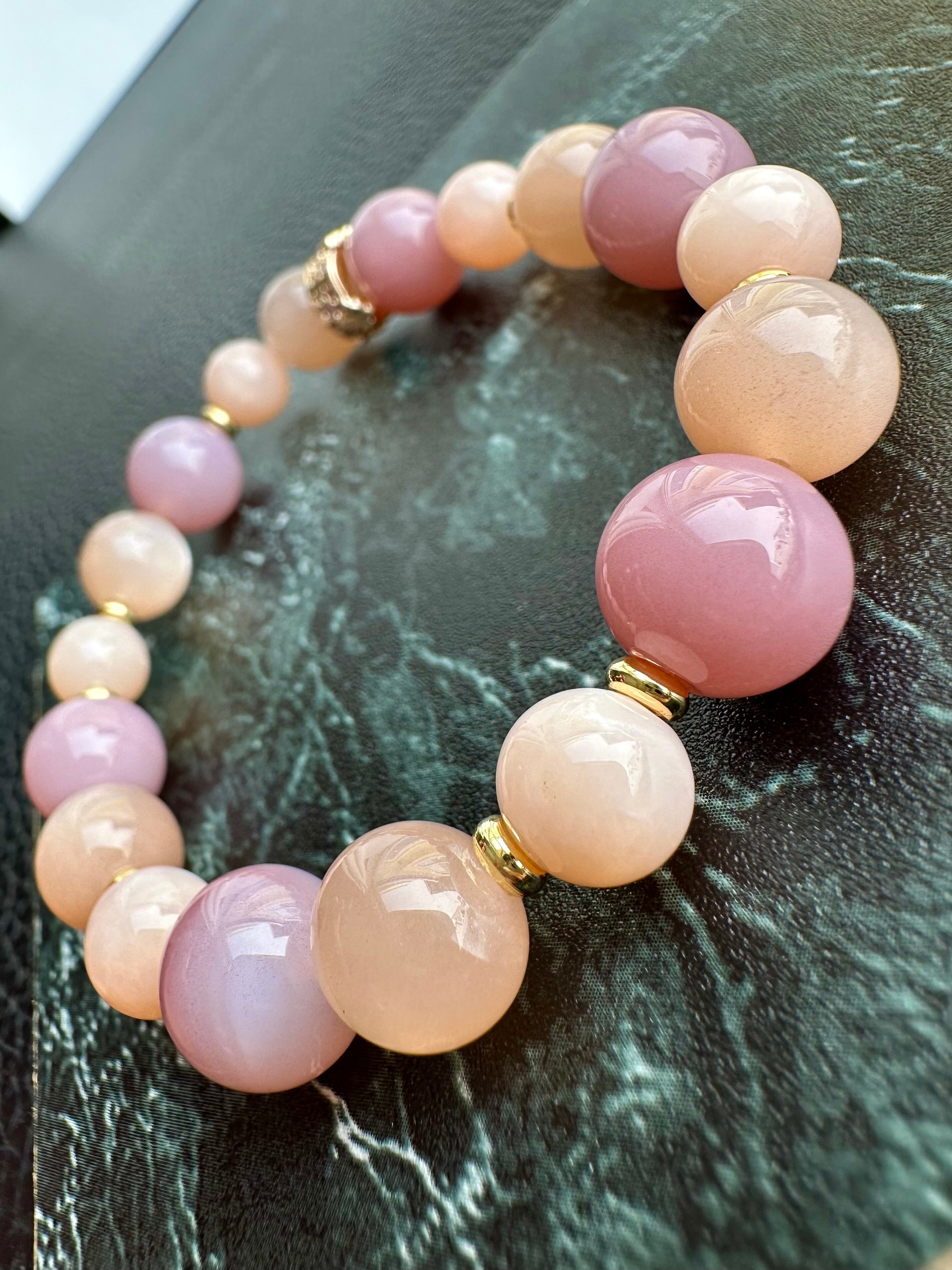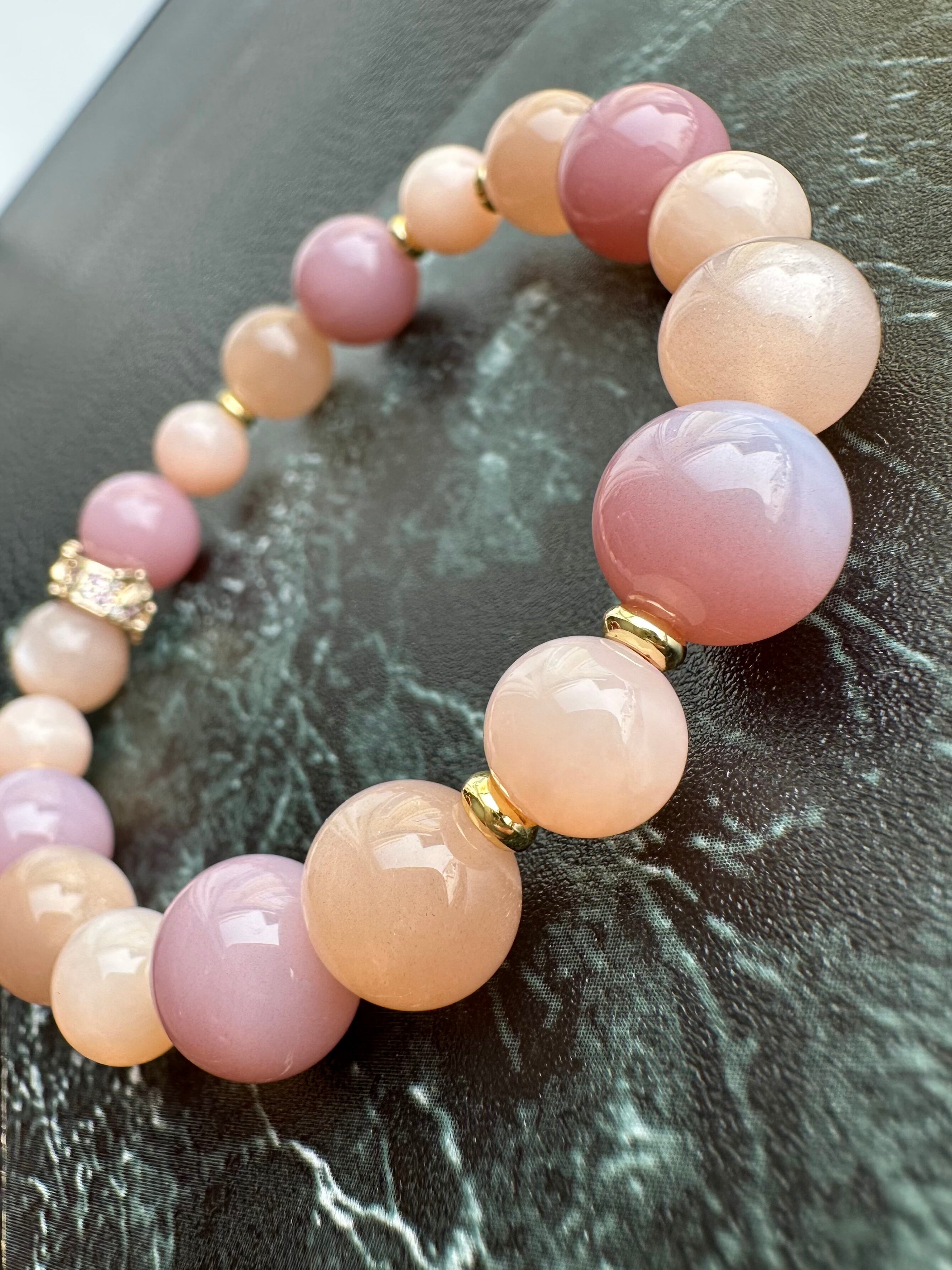 塩源瑪瑙×オレンジムーンストーン×ピンクオパール